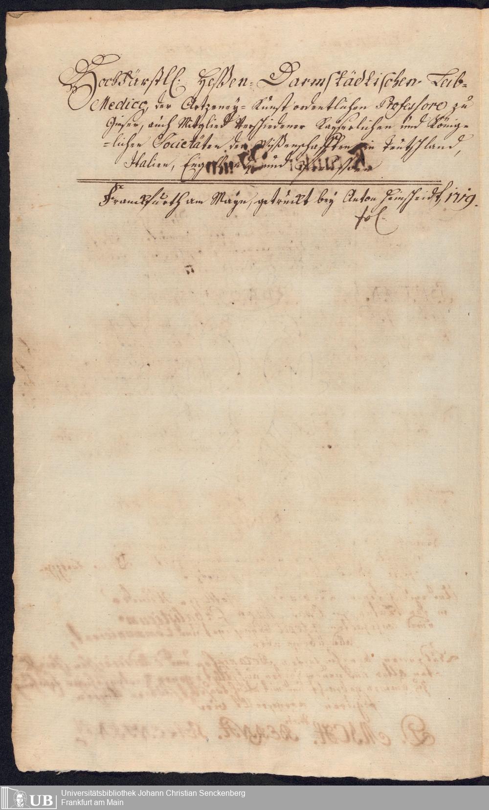 Na 31 Nachlass Johann Christian Senckenberg, 175 - Titelblatt des Kräuterbuchs von Valentini