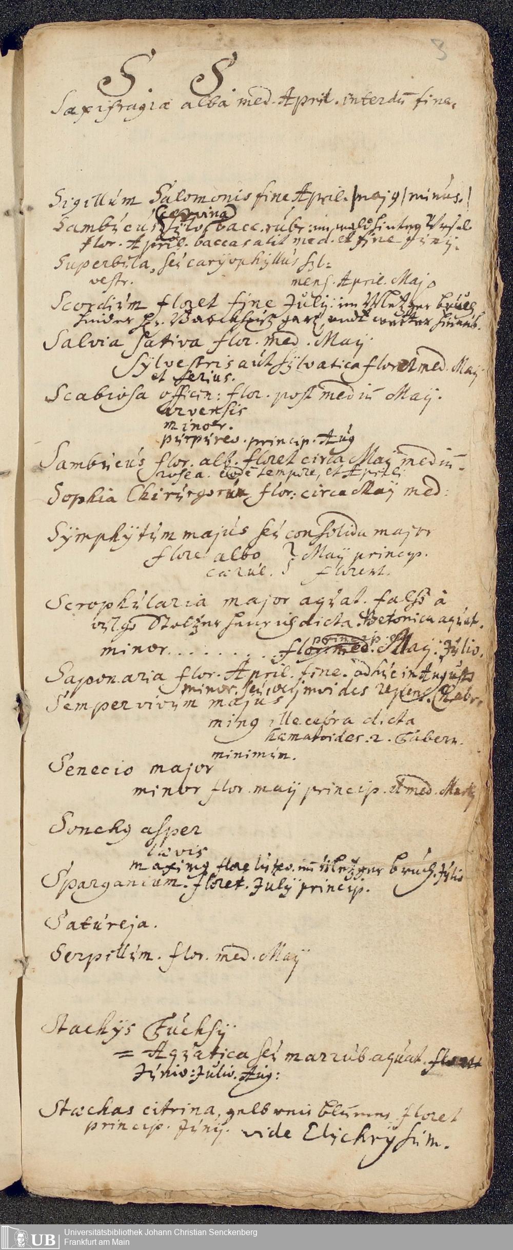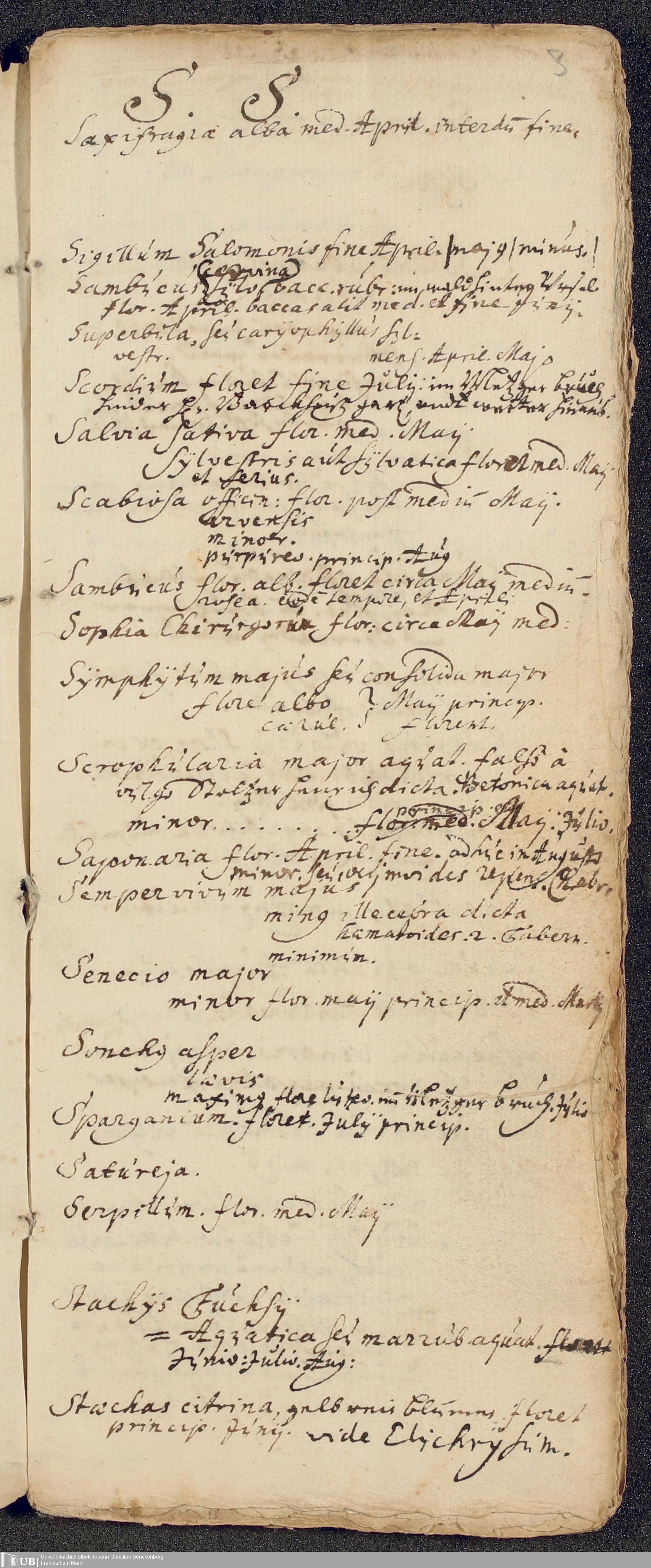 Na 31 Nachlass Johann Christian Senckenberg, 429 - Alphabetische Aufzeichnungen von Pflanzen H-R, S-Z