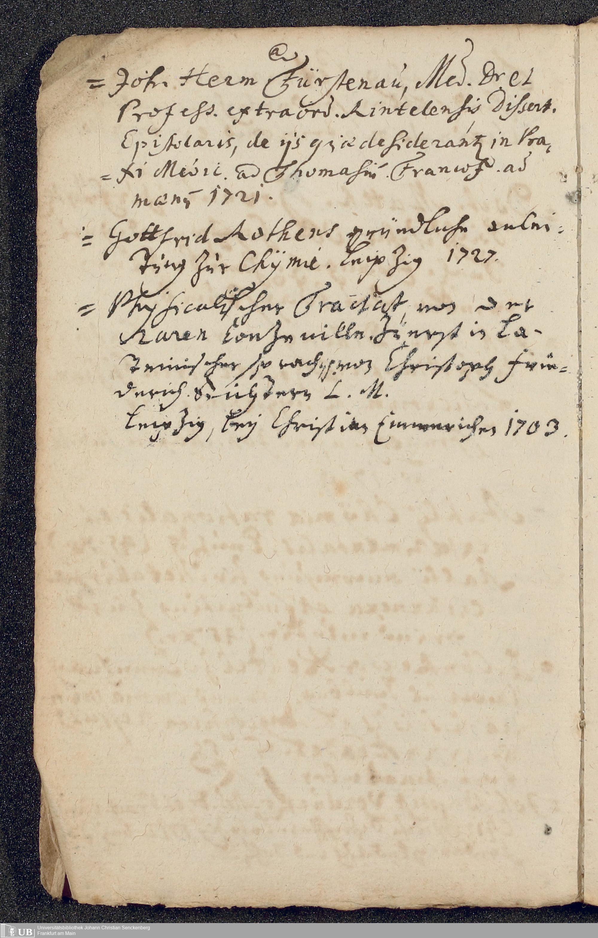 Na 31 Nachlass Johann Christian Senckenberg, 431 - Sammlung von Druckschriften und Abschriften aus der Studienzeit Hartmann Senckenbergs