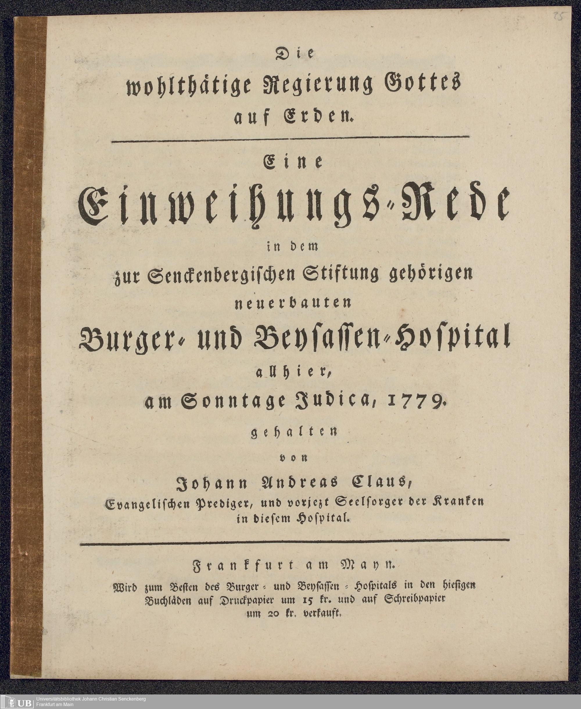 B 5 Dr. Senckenbergische Stiftung, 190 - Einweihungsrede im Bürgerhospital