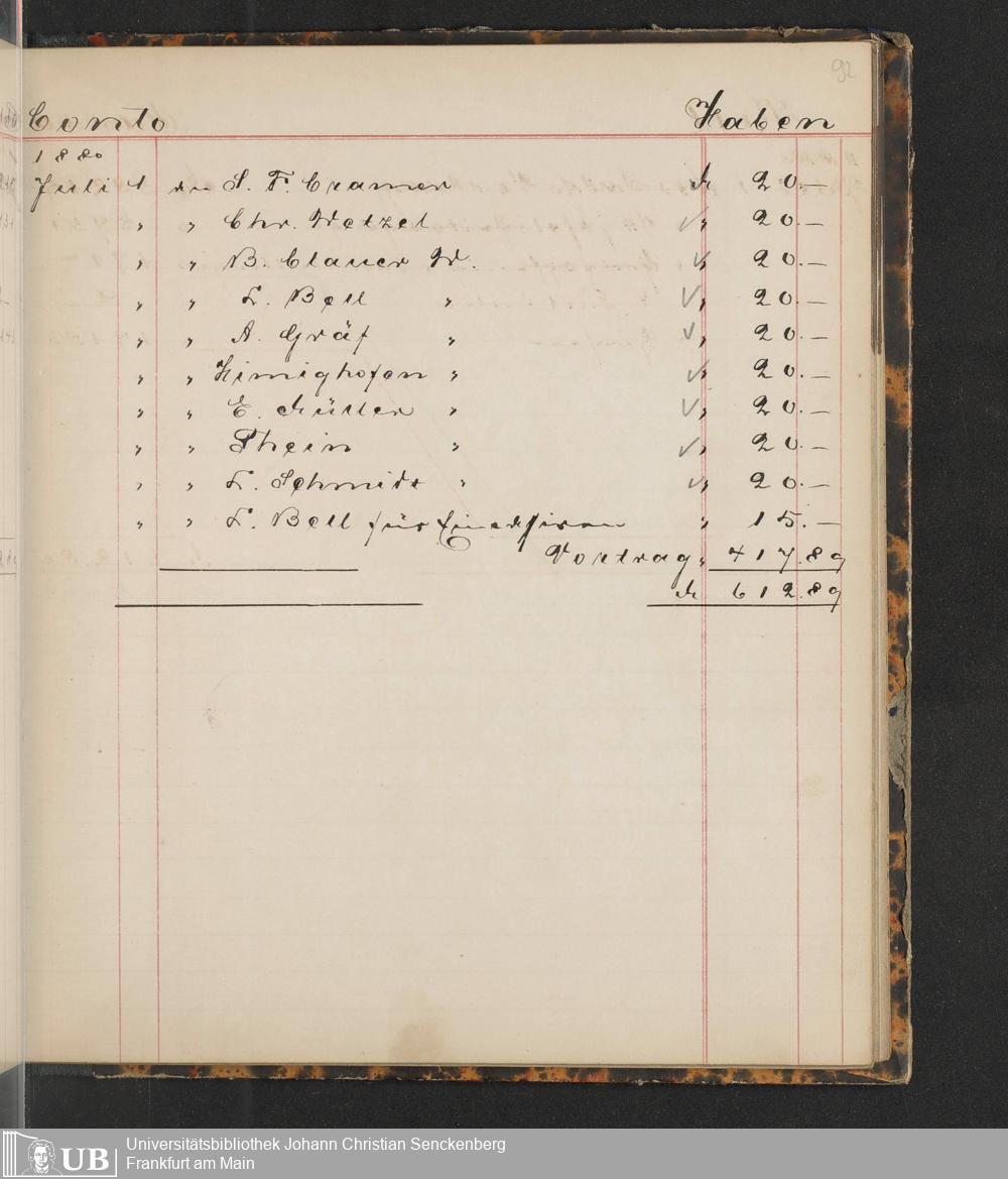 B 5 Dr. Senckenbergische Stiftung, 149 - Kassenbücher der Unterstützungskasse der Bierbrauer-Genossenschaft