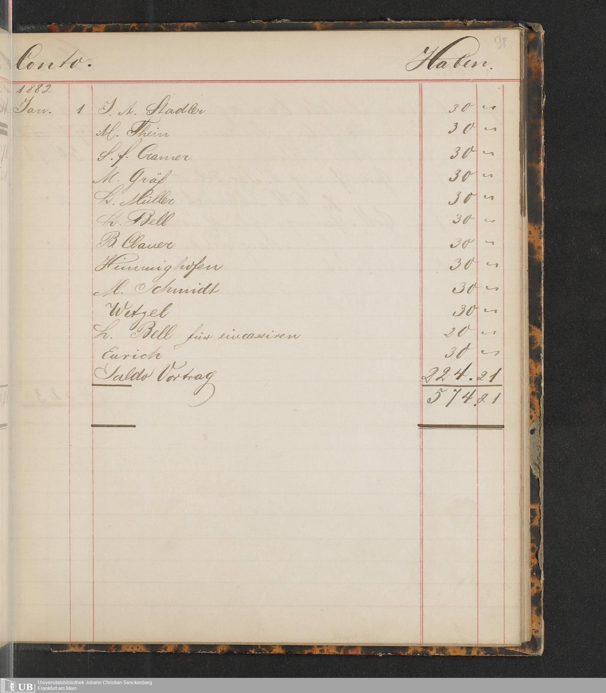 B 5 Dr. Senckenbergische Stiftung, 149 - Kassenbücher der Unterstützungskasse der Bierbrauer-Genossenschaft