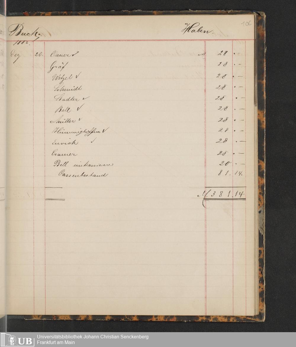 B 5 Dr. Senckenbergische Stiftung, 149 - Kassenbücher der Unterstützungskasse der Bierbrauer-Genossenschaft
