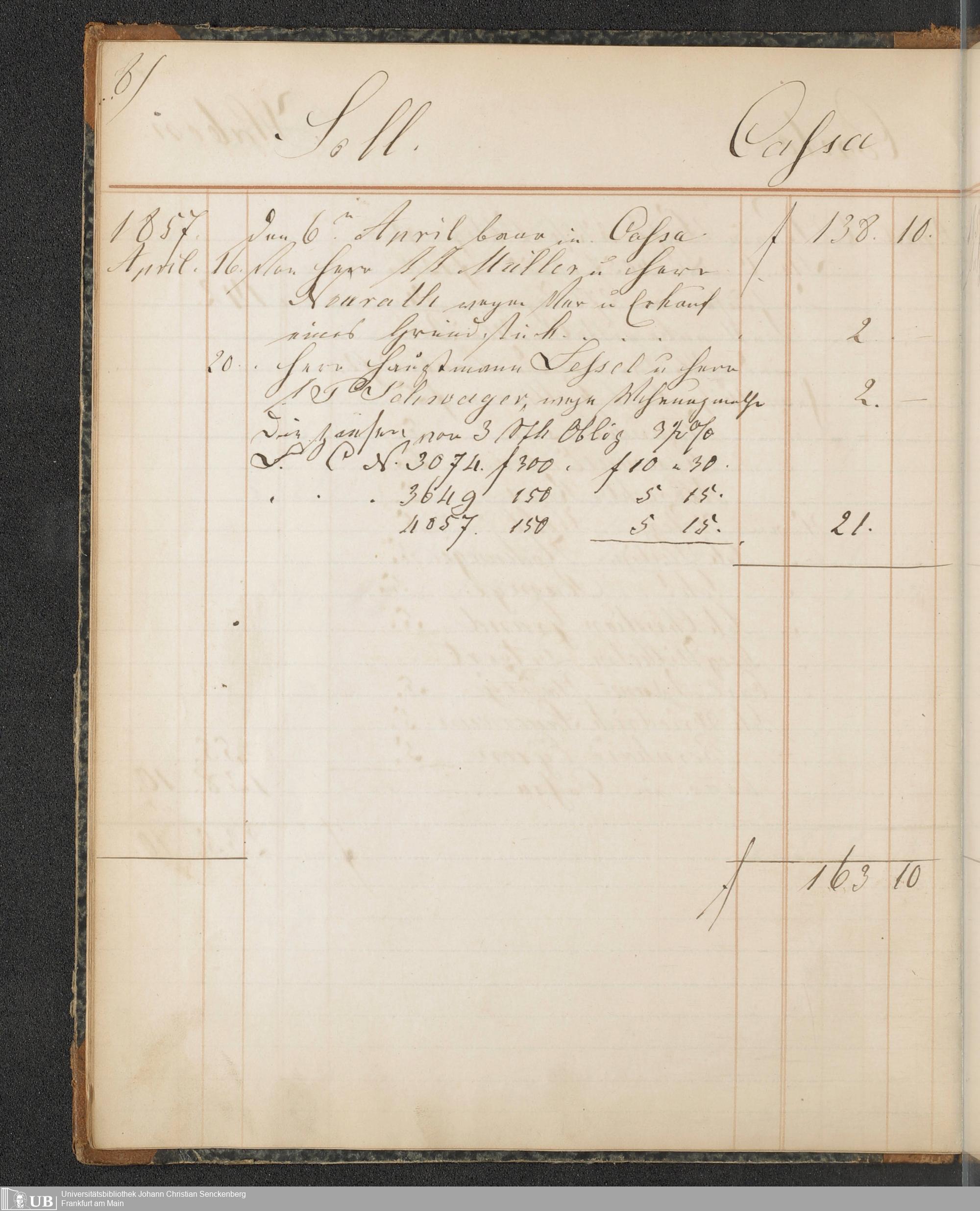 B 5 Dr. Senckenbergische Stiftung, 148 - Kassenbücher der Unterstützungskasse der Bierbrauer-Genossenschaft