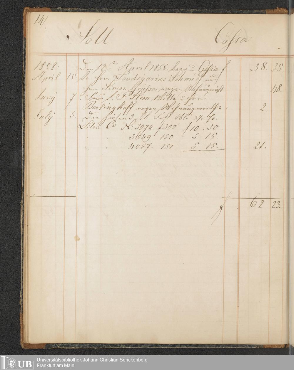 B 5 Dr. Senckenbergische Stiftung, 148 - Kassenbücher der Unterstützungskasse der Bierbrauer-Genossenschaft