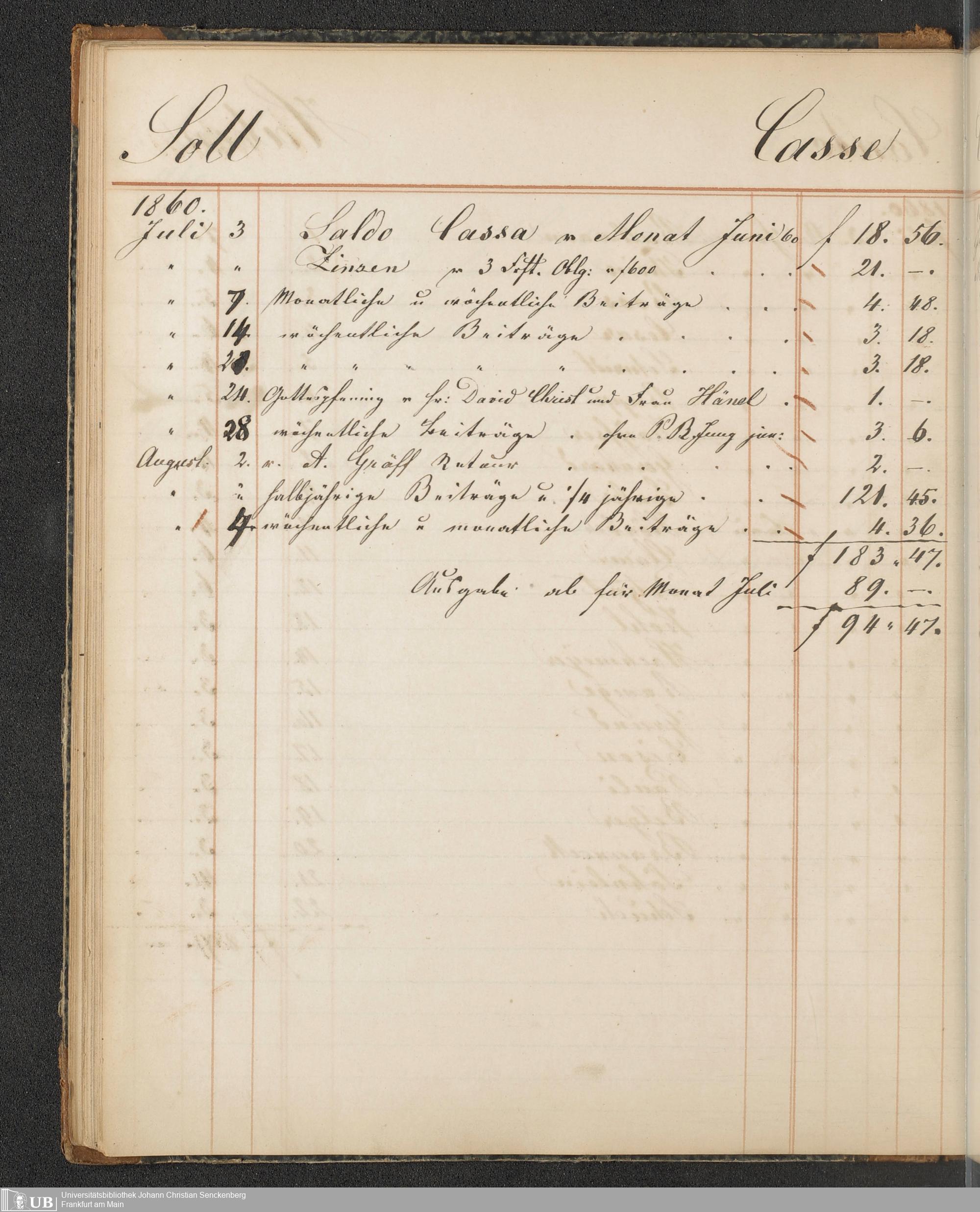 B 5 Dr. Senckenbergische Stiftung, 148 - Kassenbücher der Unterstützungskasse der Bierbrauer-Genossenschaft