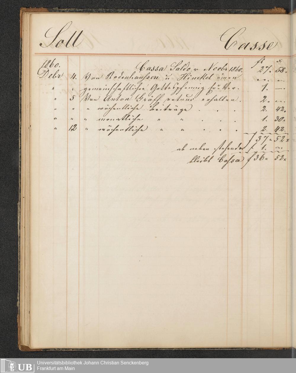 B 5 Dr. Senckenbergische Stiftung, 148 - Kassenbücher der Unterstützungskasse der Bierbrauer-Genossenschaft