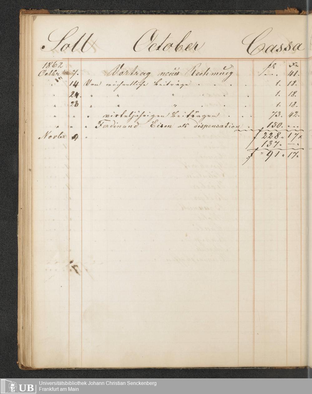 B 5 Dr. Senckenbergische Stiftung, 148 - Kassenbücher der Unterstützungskasse der Bierbrauer-Genossenschaft