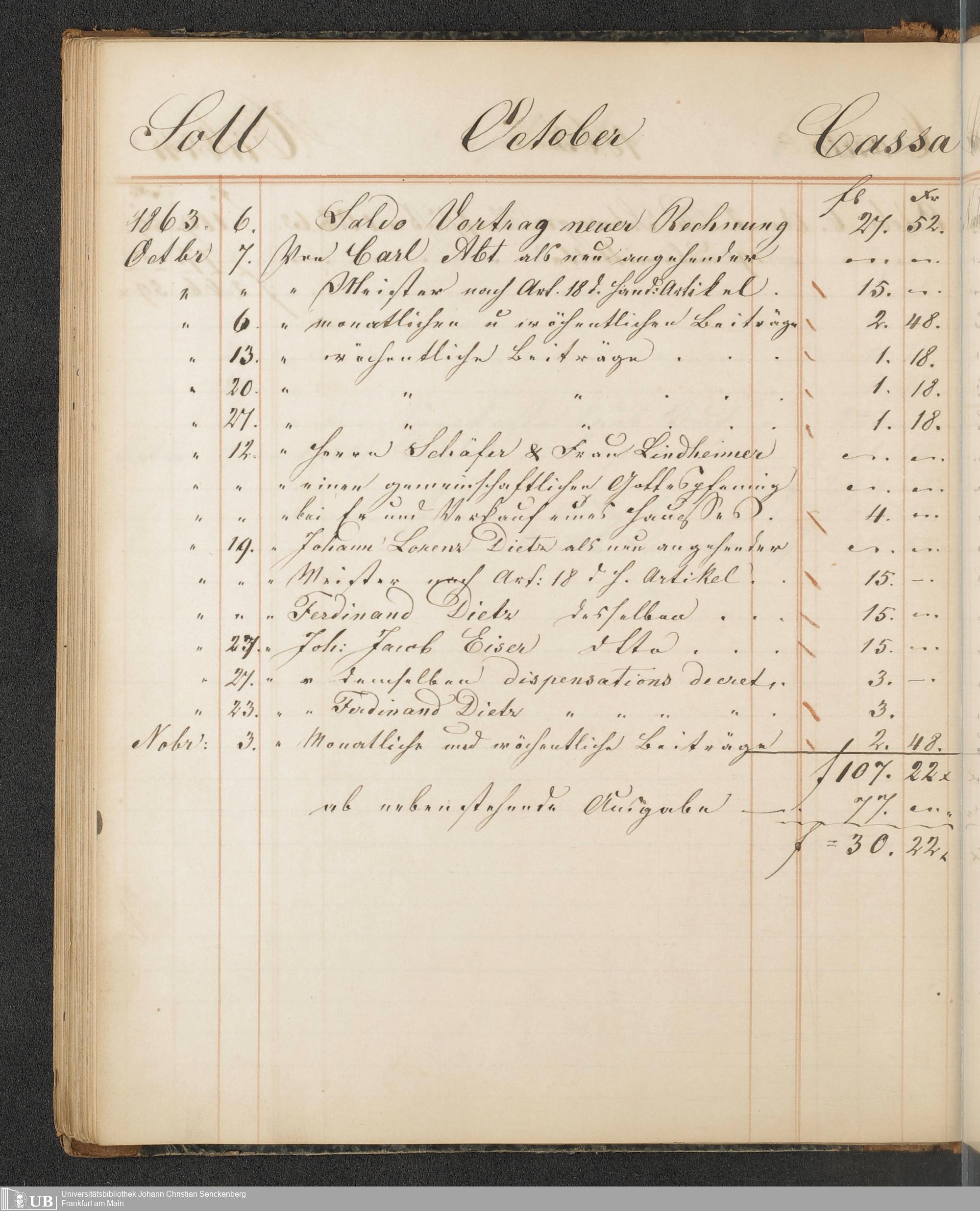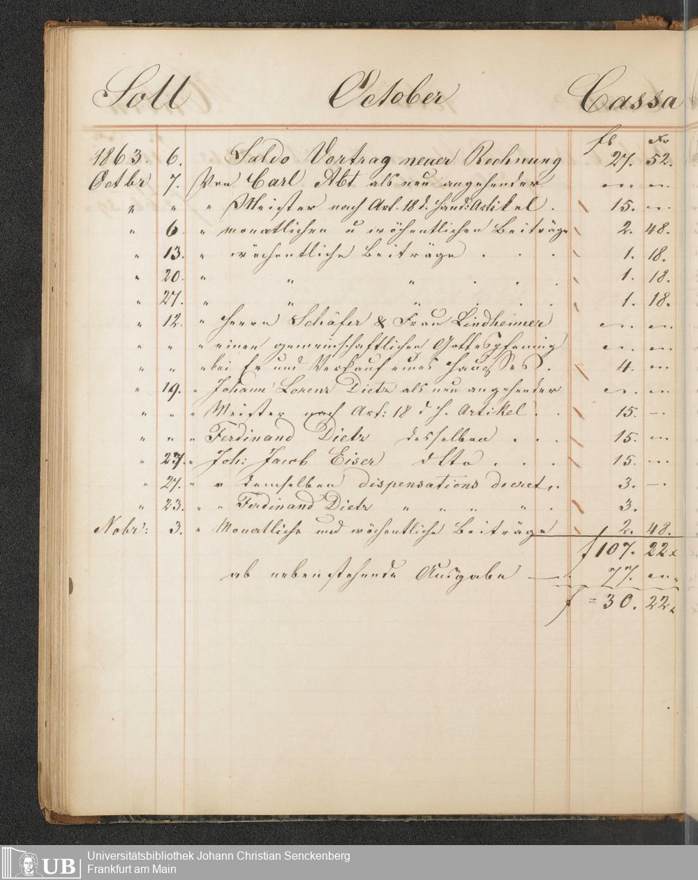 B 5 Dr. Senckenbergische Stiftung, 148 - Kassenbücher der Unterstützungskasse der Bierbrauer-Genossenschaft