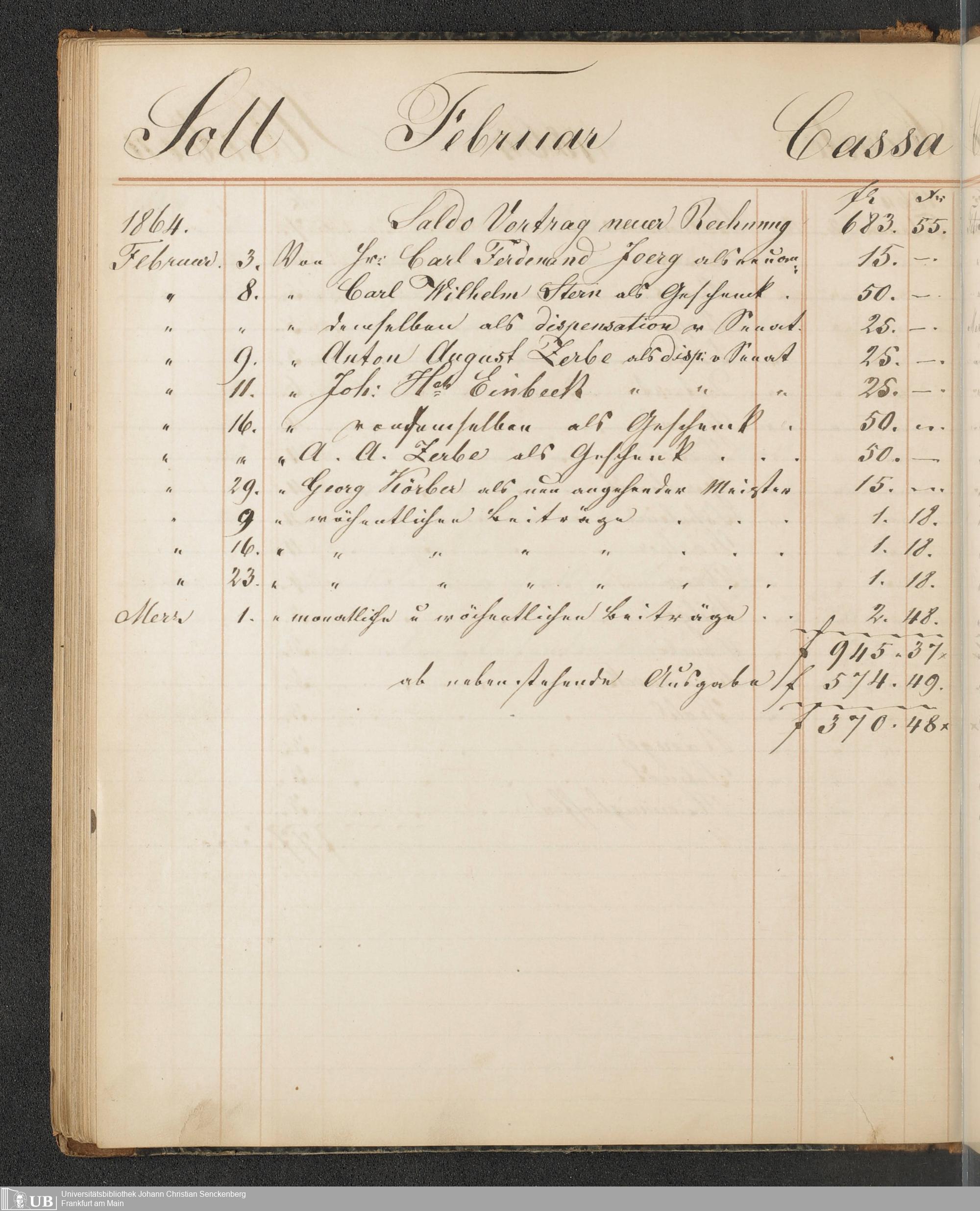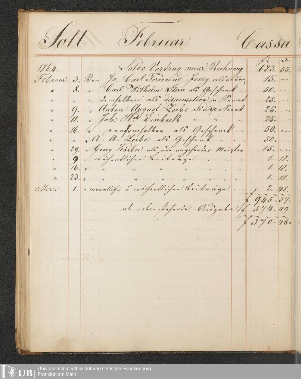 B 5 Dr. Senckenbergische Stiftung, 148 - Kassenbücher der Unterstützungskasse der Bierbrauer-Genossenschaft