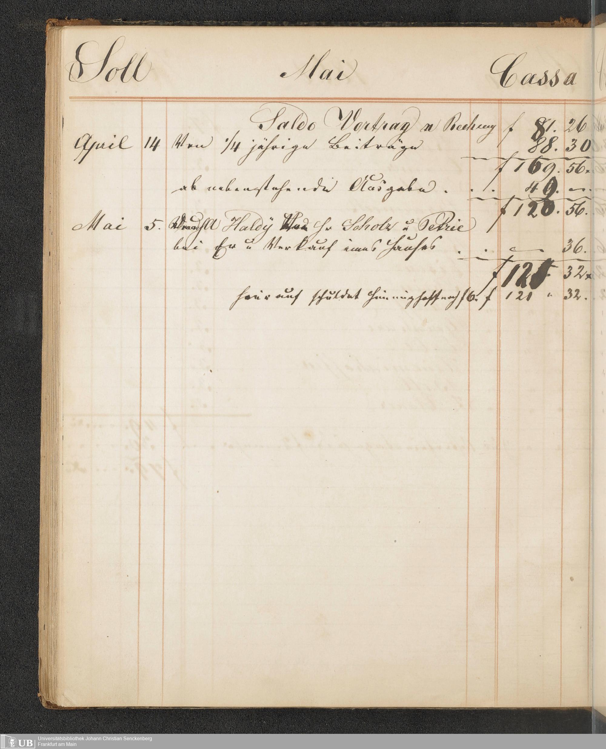 B 5 Dr. Senckenbergische Stiftung, 148 - Kassenbücher der Unterstützungskasse der Bierbrauer-Genossenschaft