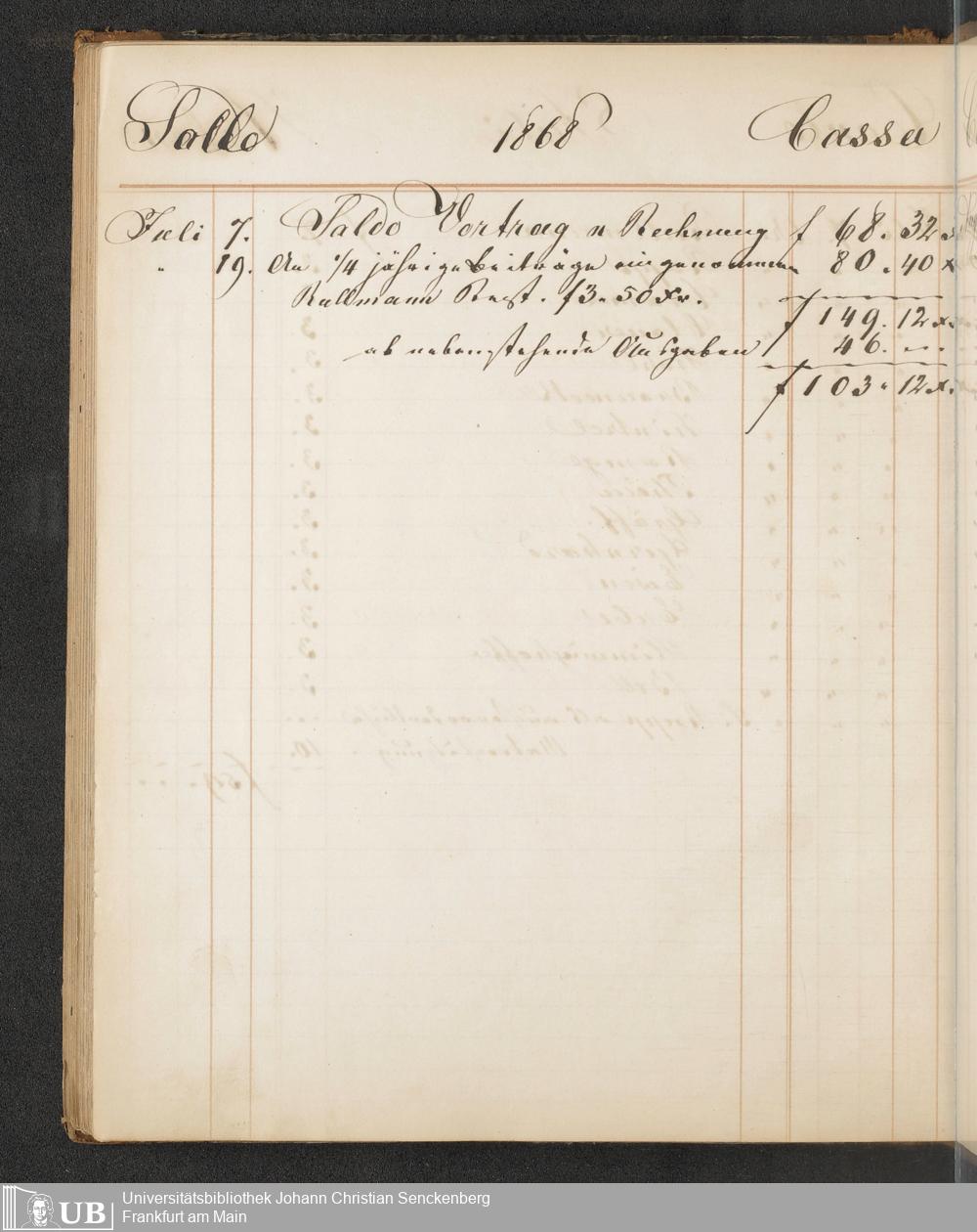 B 5 Dr. Senckenbergische Stiftung, 148 - Kassenbücher der Unterstützungskasse der Bierbrauer-Genossenschaft