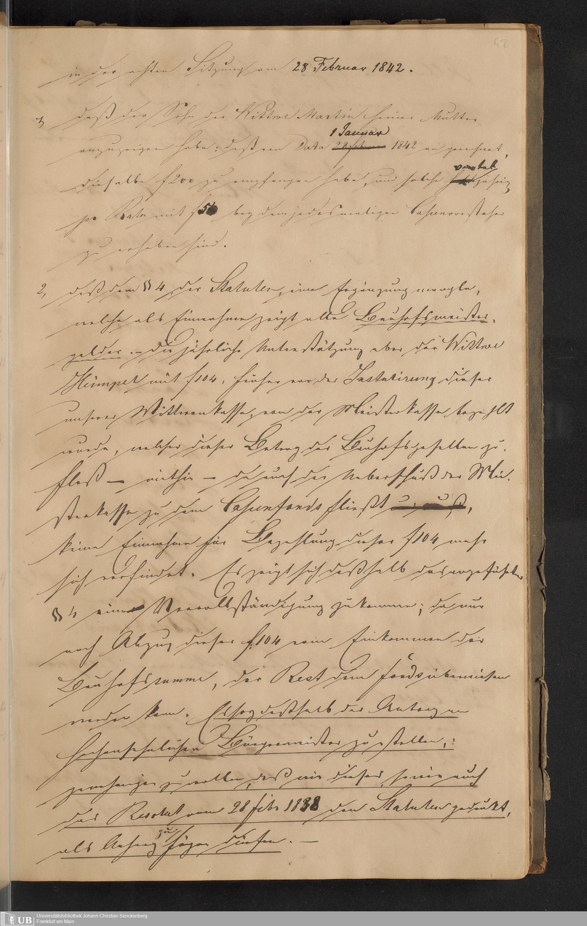 B 5 Dr. Senckenbergische Stiftung, 150 - Protokollbuch der Zimmermeister-Witwenkasse