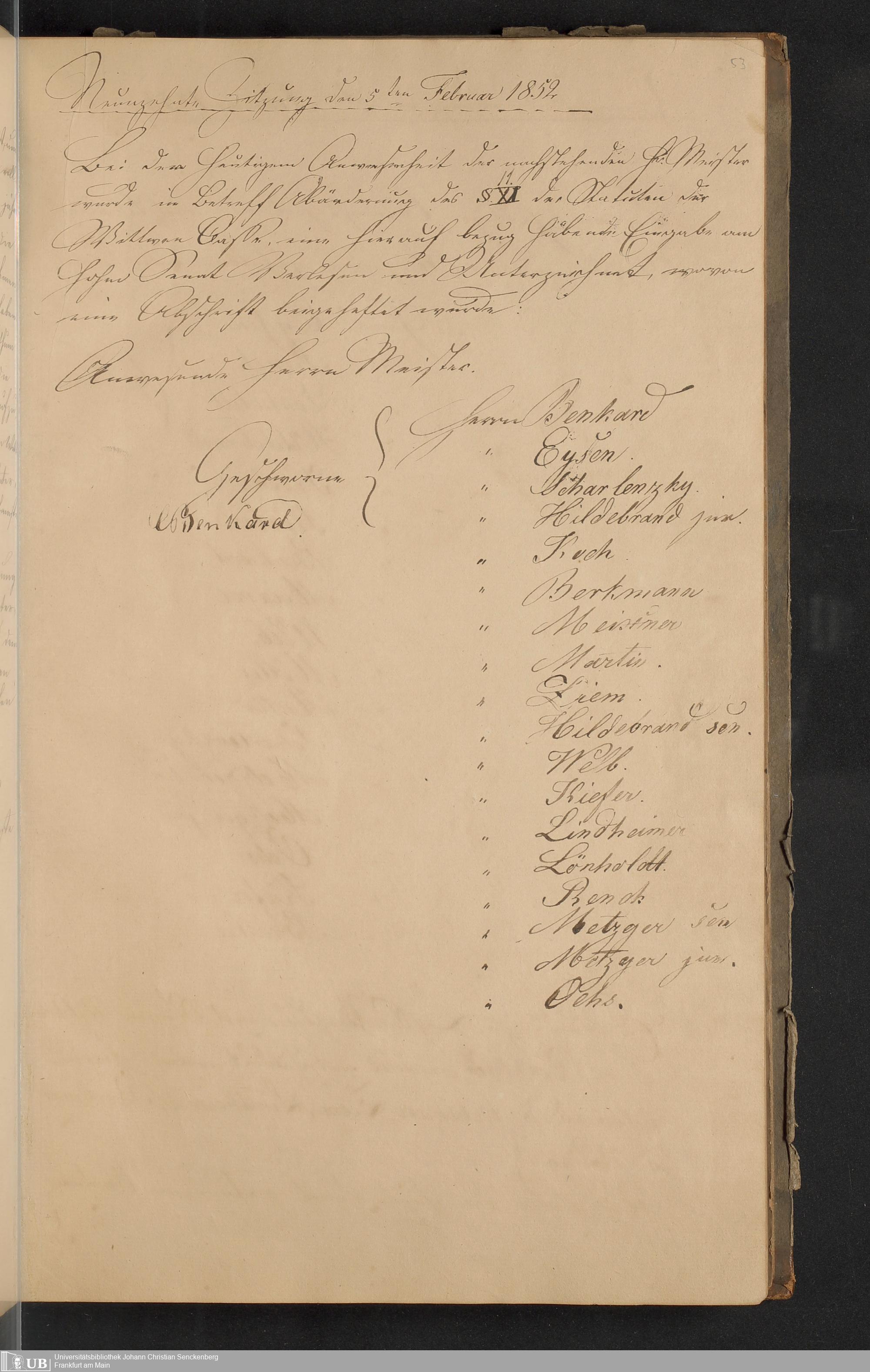 B 5 Dr. Senckenbergische Stiftung, 150 - Protokollbuch der Zimmermeister-Witwenkasse
