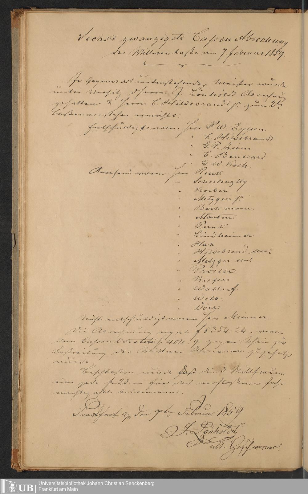 B 5 Dr. Senckenbergische Stiftung, 150 - Protokollbuch der Zimmermeister-Witwenkasse