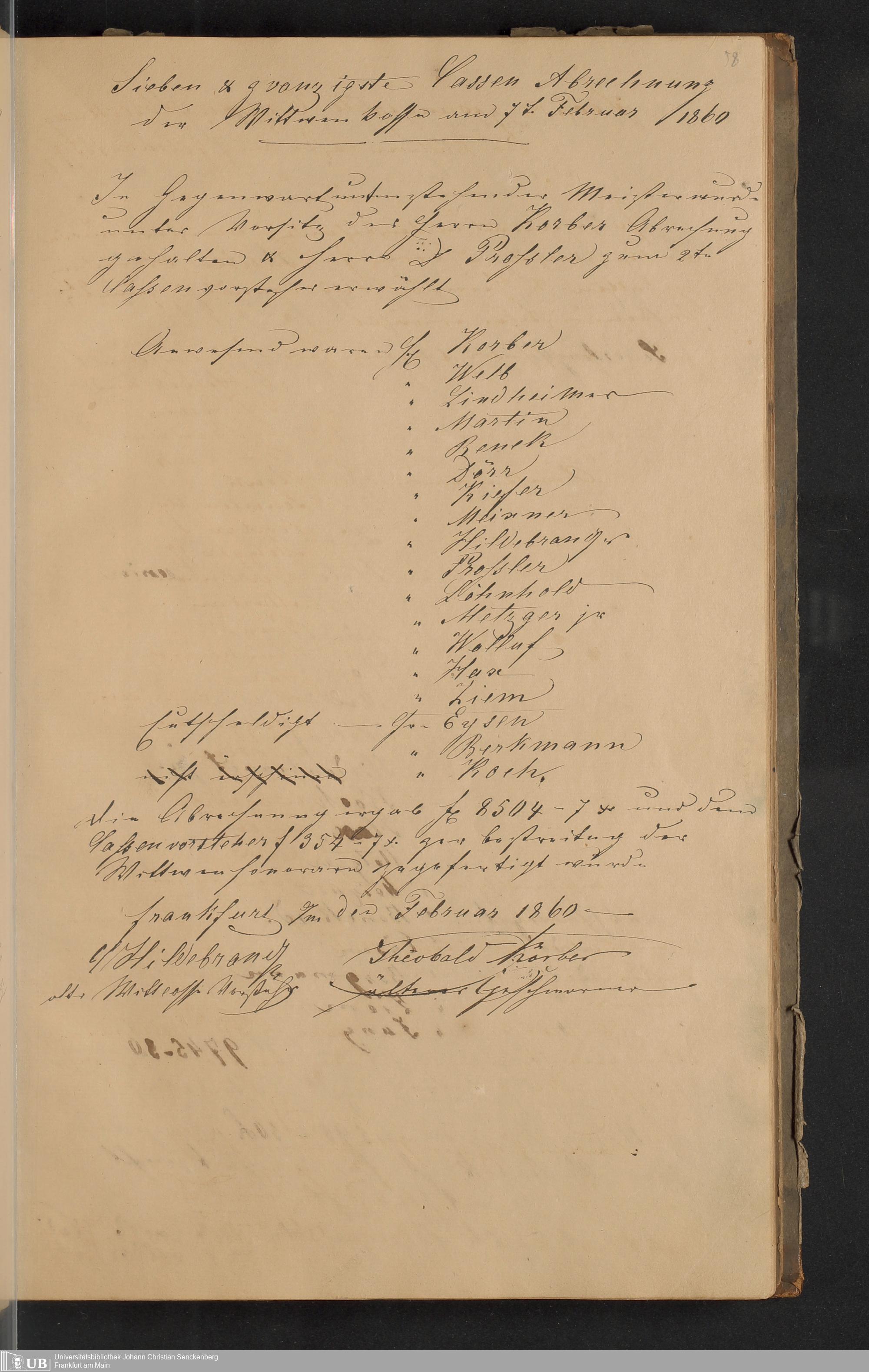 B 5 Dr. Senckenbergische Stiftung, 150 - Protokollbuch der Zimmermeister-Witwenkasse