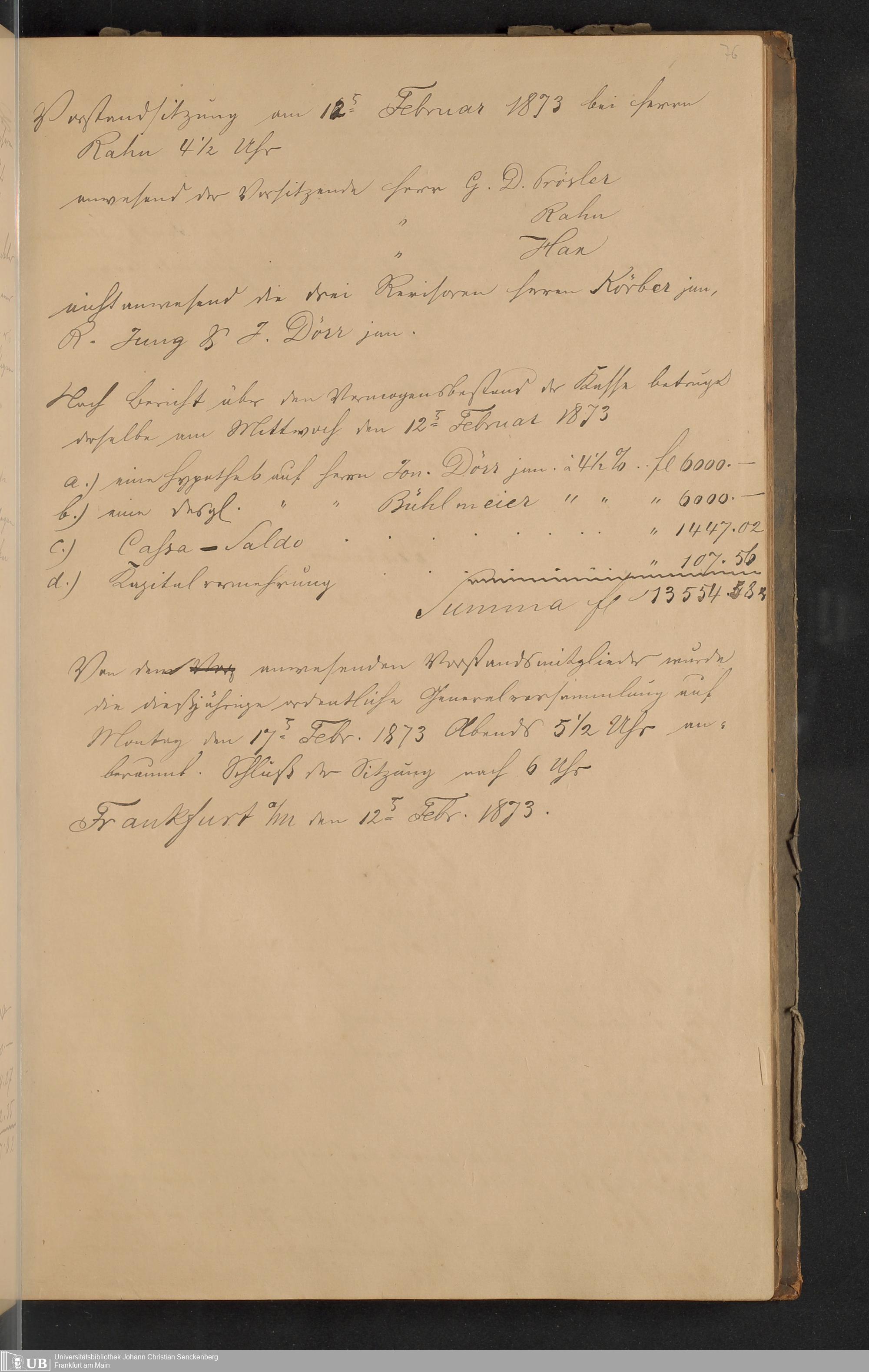 B 5 Dr. Senckenbergische Stiftung, 150 - Protokollbuch der Zimmermeister-Witwenkasse