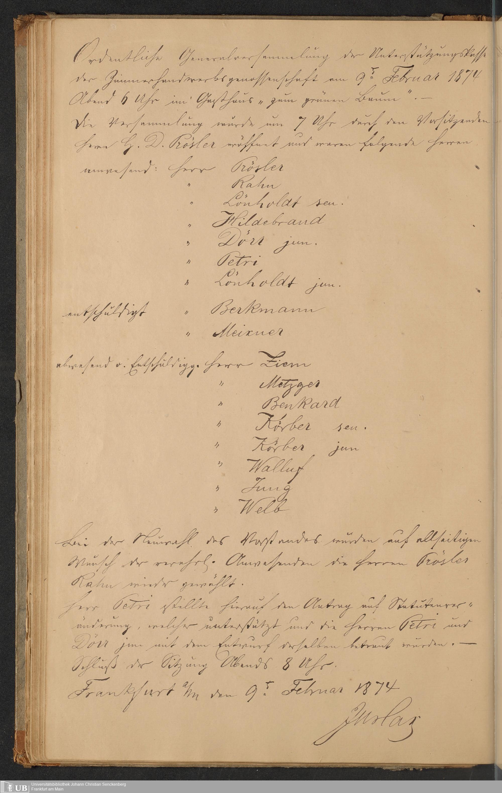B 5 Dr. Senckenbergische Stiftung, 150 - Protokollbuch der Zimmermeister-Witwenkasse