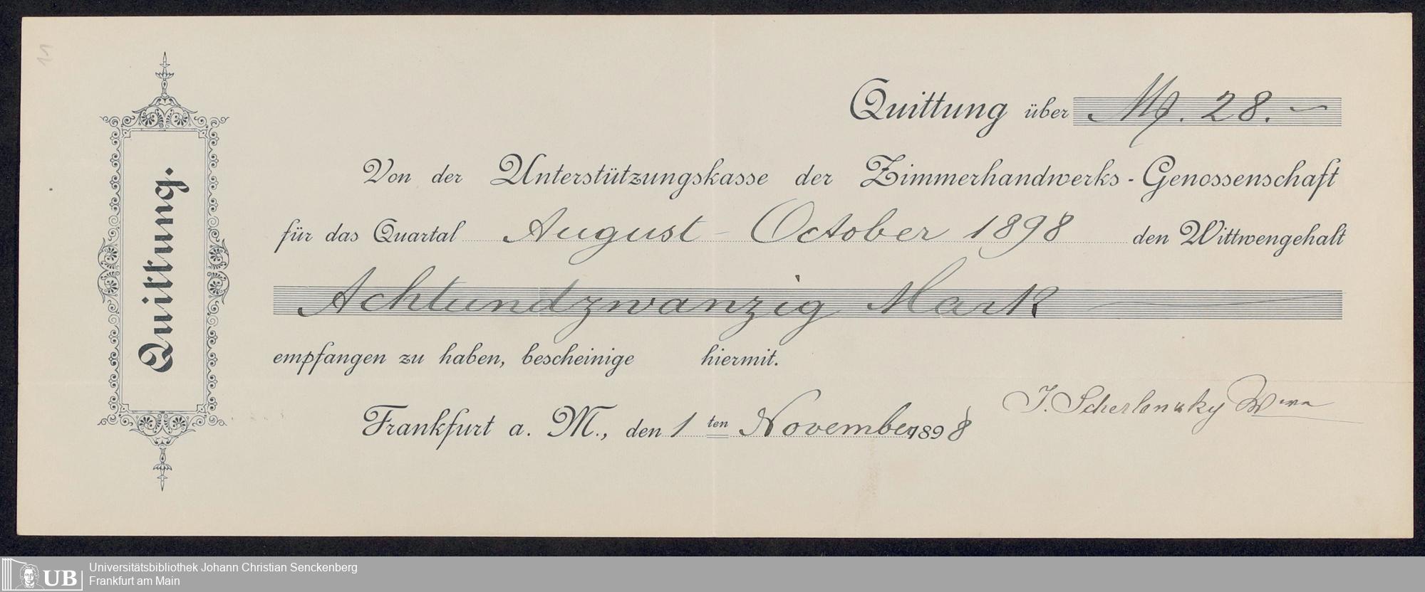 B 5 Dr. Senckenbergische Stiftung, 150 - Protokollbuch der Zimmermeister-Witwenkasse