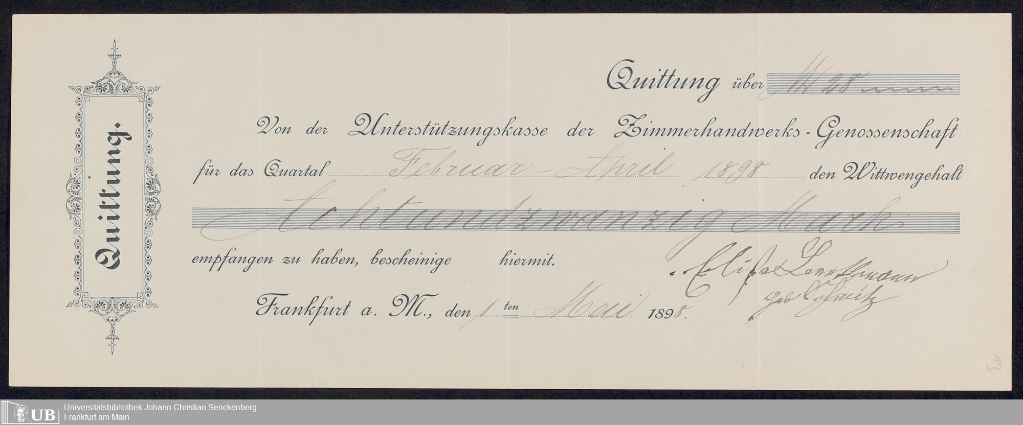 B 5 Dr. Senckenbergische Stiftung, 150 - Protokollbuch der Zimmermeister-Witwenkasse