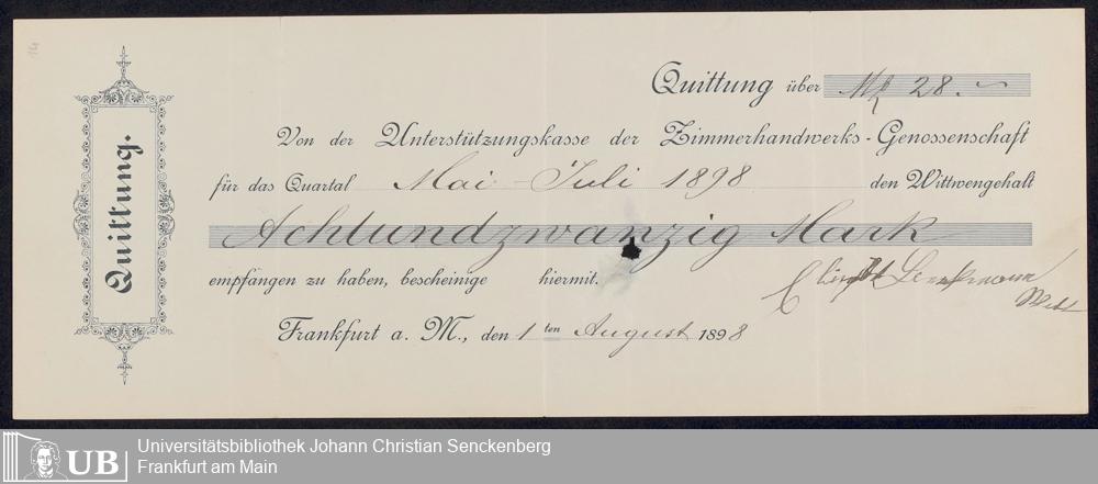 B 5 Dr. Senckenbergische Stiftung, 150 - Protokollbuch der Zimmermeister-Witwenkasse