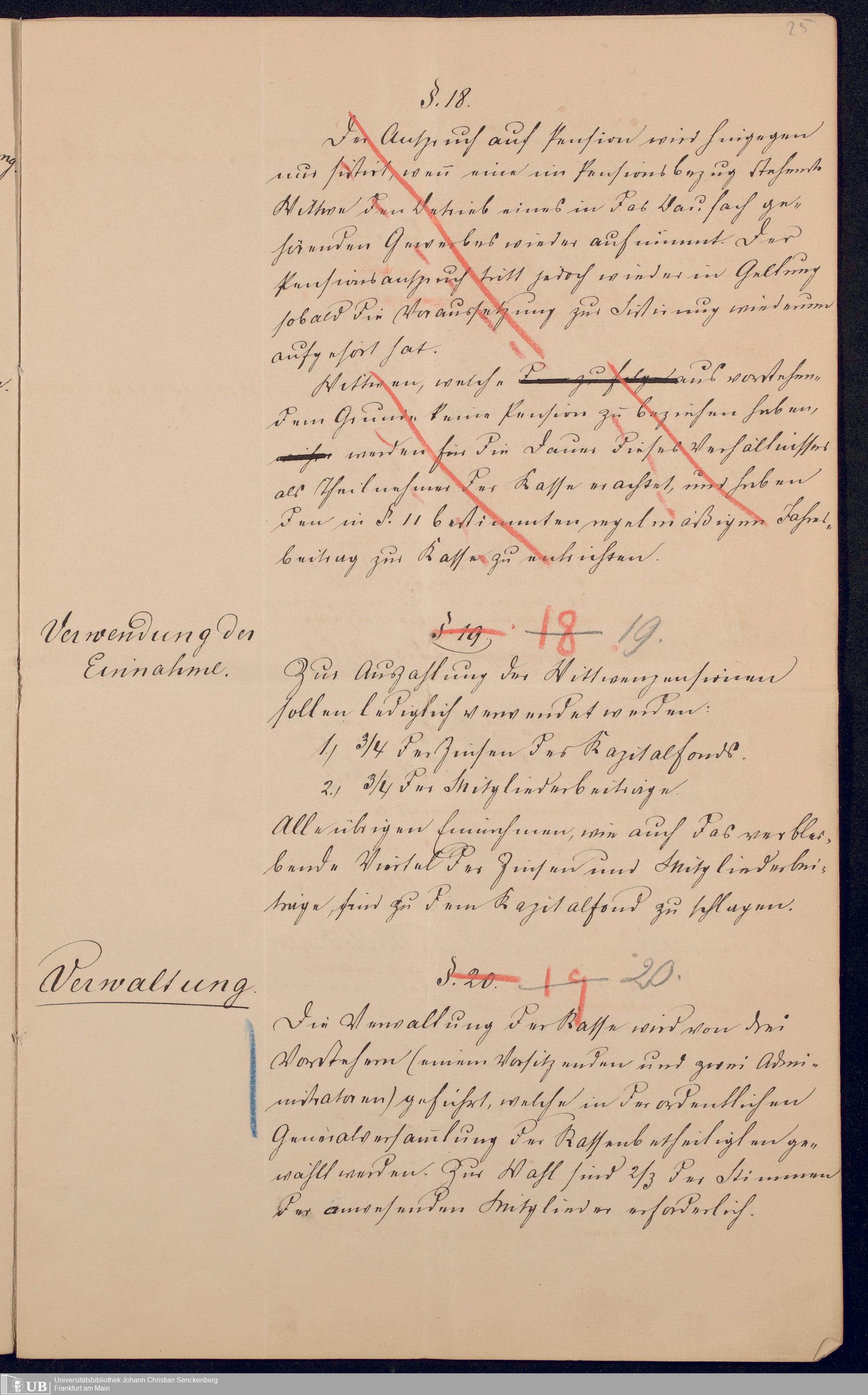 B 5 Dr. Senckenbergische Stiftung, 150 - Protokollbuch der Zimmermeister-Witwenkasse