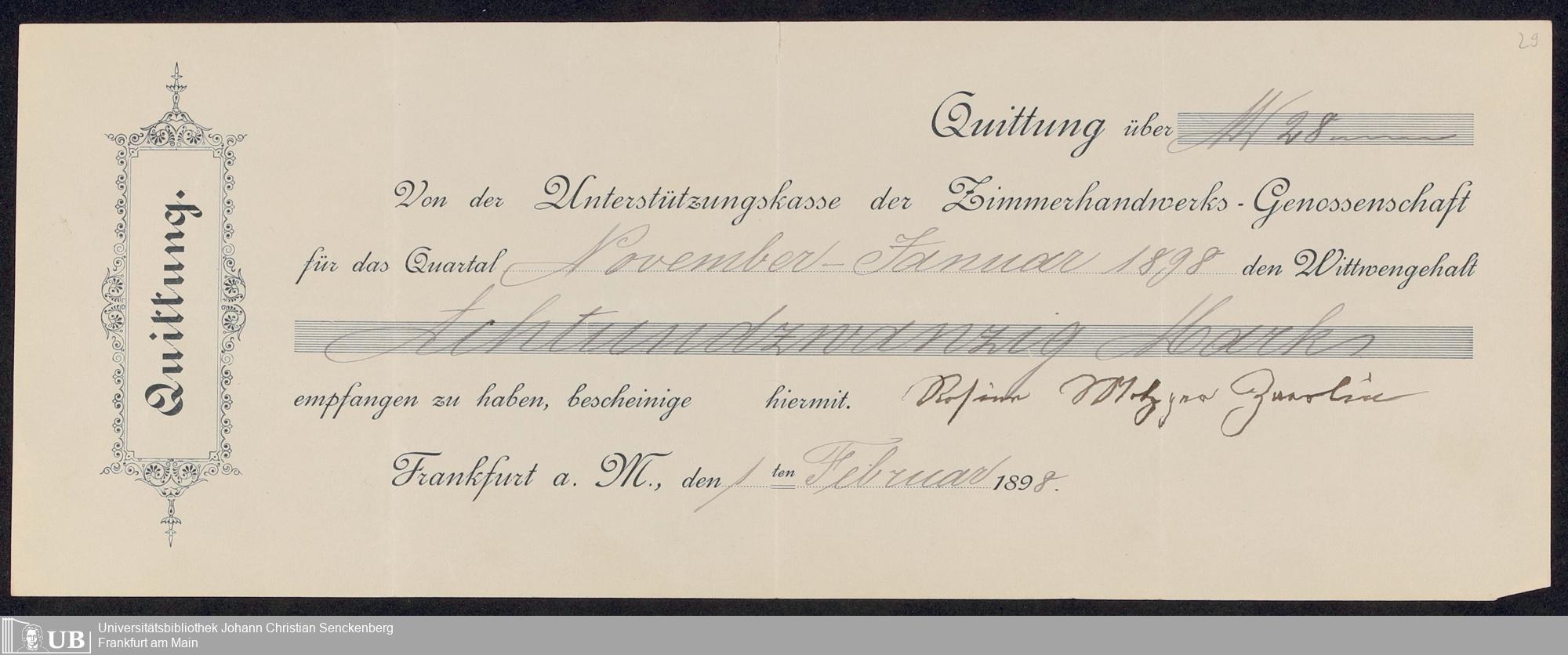 B 5 Dr. Senckenbergische Stiftung, 150 - Protokollbuch der Zimmermeister-Witwenkasse