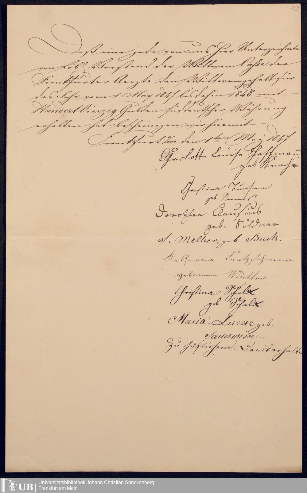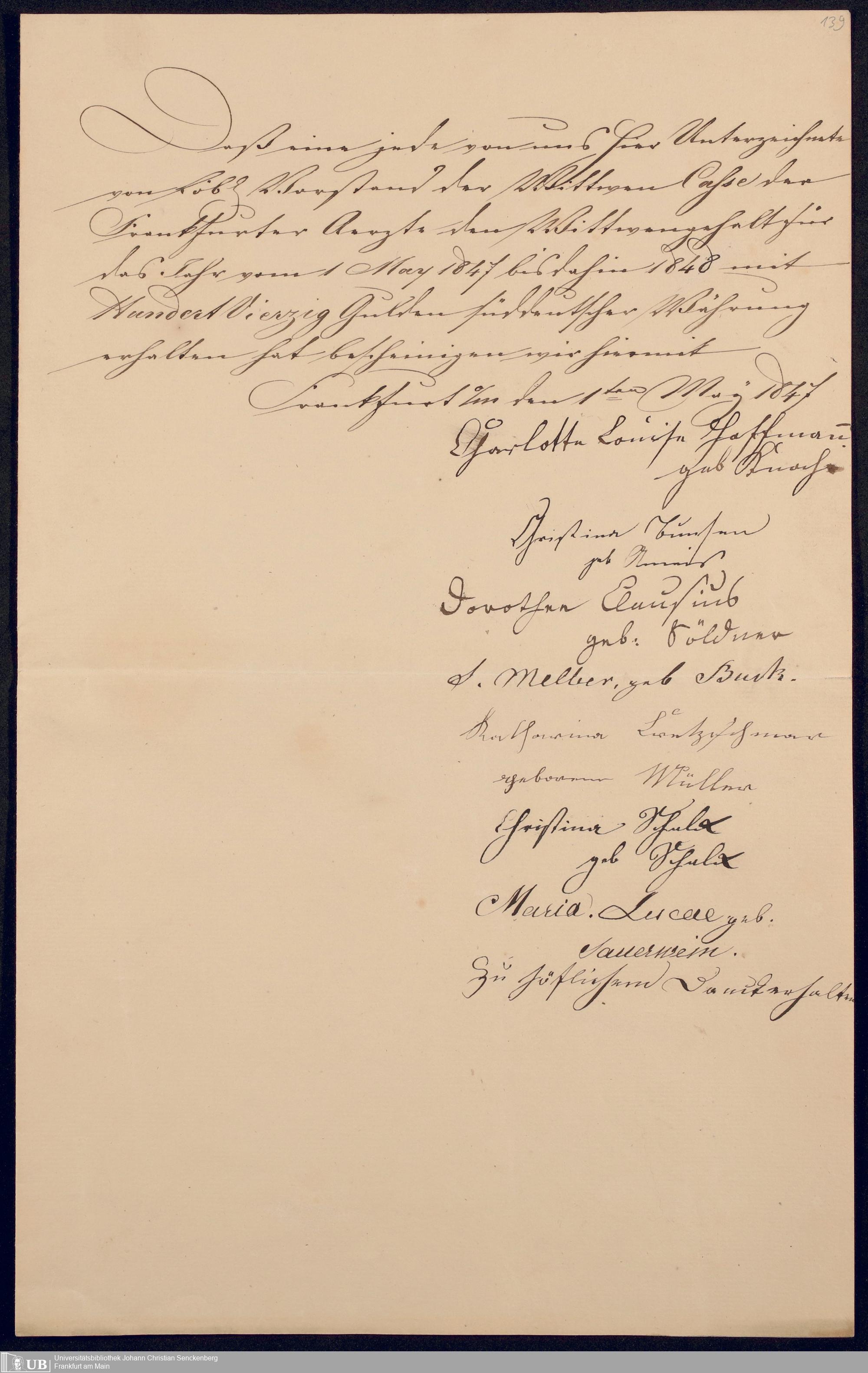 B 5 Dr. Senckenbergische Stiftung, 142 - Witwenkasse IV