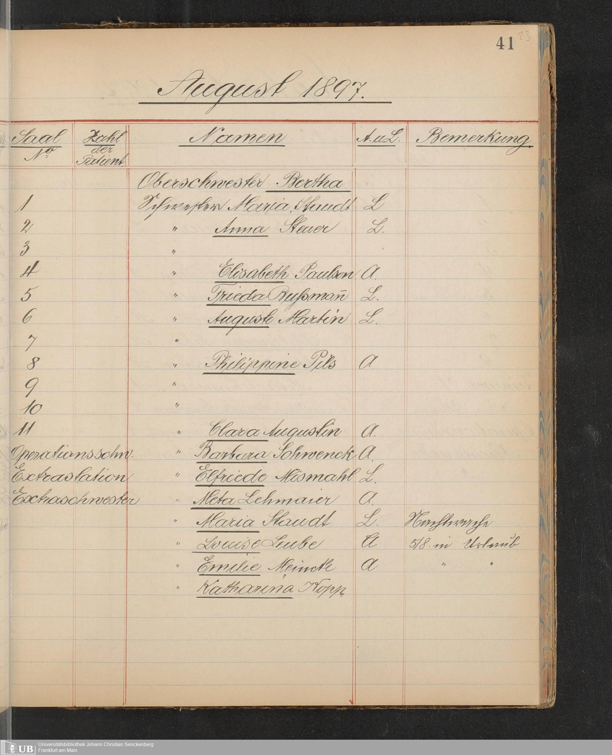 B 5 Dr. Senckenbergische Stiftung, 217 - Pflegepersonal des Bürgerhospitals