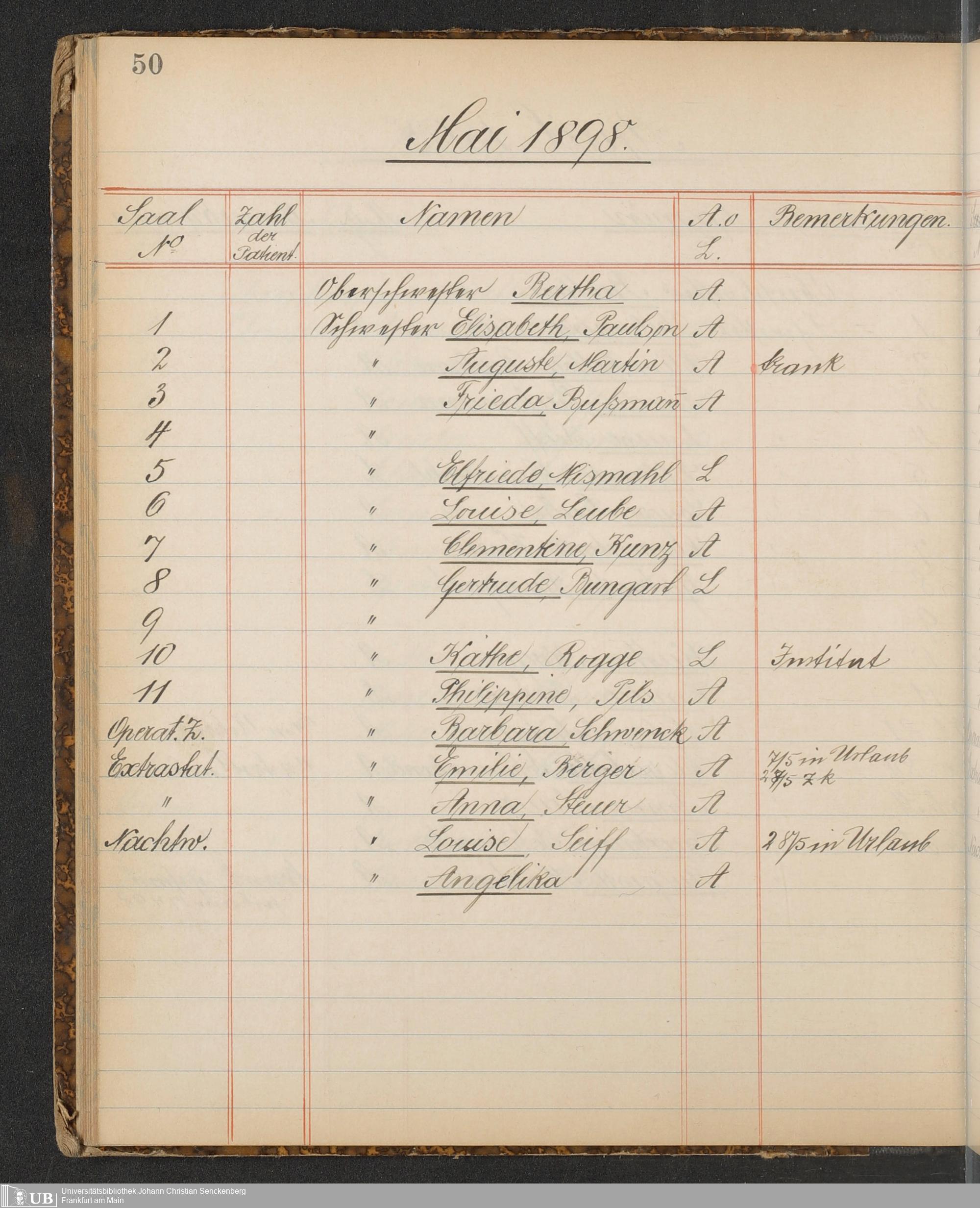 B 5 Dr. Senckenbergische Stiftung, 217 - Pflegepersonal des Bürgerhospitals