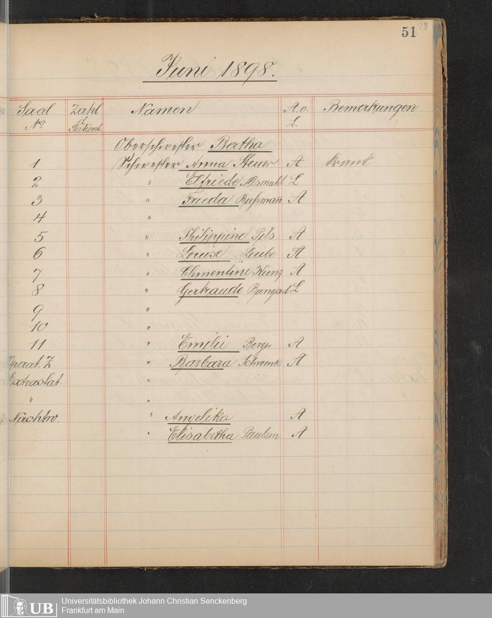 B 5 Dr. Senckenbergische Stiftung, 217 - Pflegepersonal des Bürgerhospitals