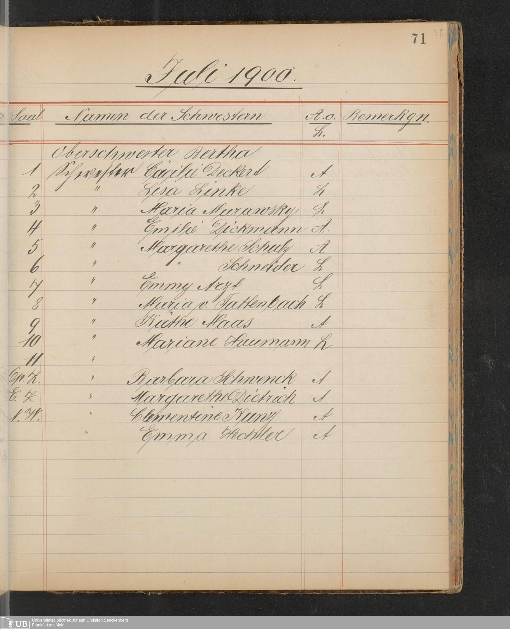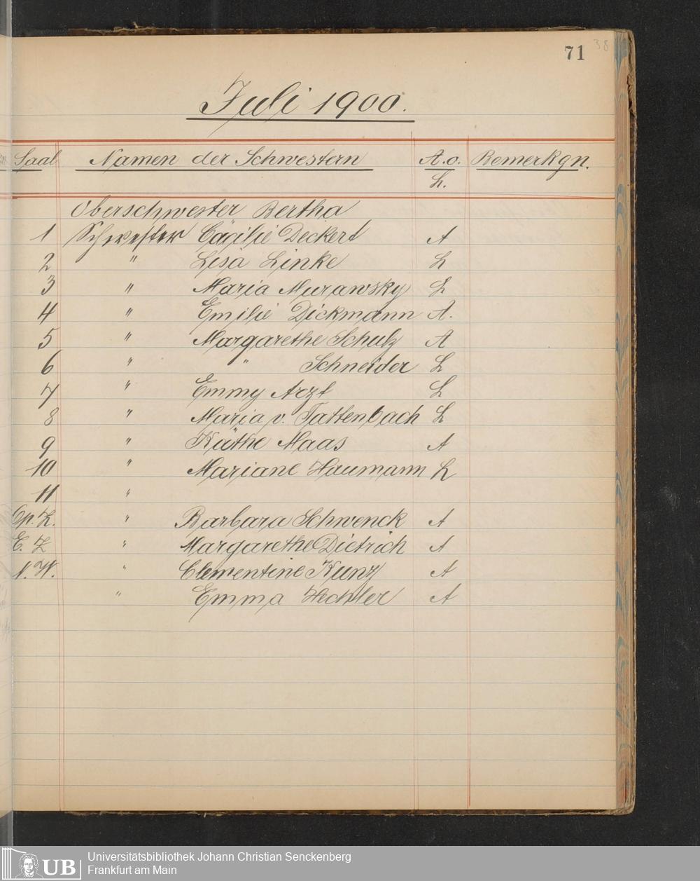 B 5 Dr. Senckenbergische Stiftung, 217 - Pflegepersonal des Bürgerhospitals
