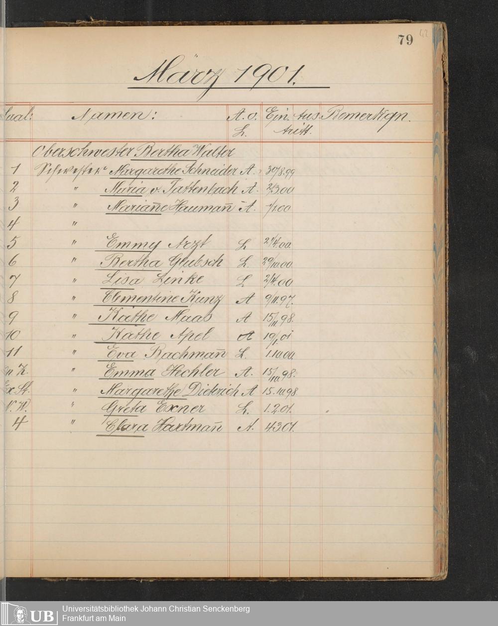 B 5 Dr. Senckenbergische Stiftung, 217 - Pflegepersonal des Bürgerhospitals