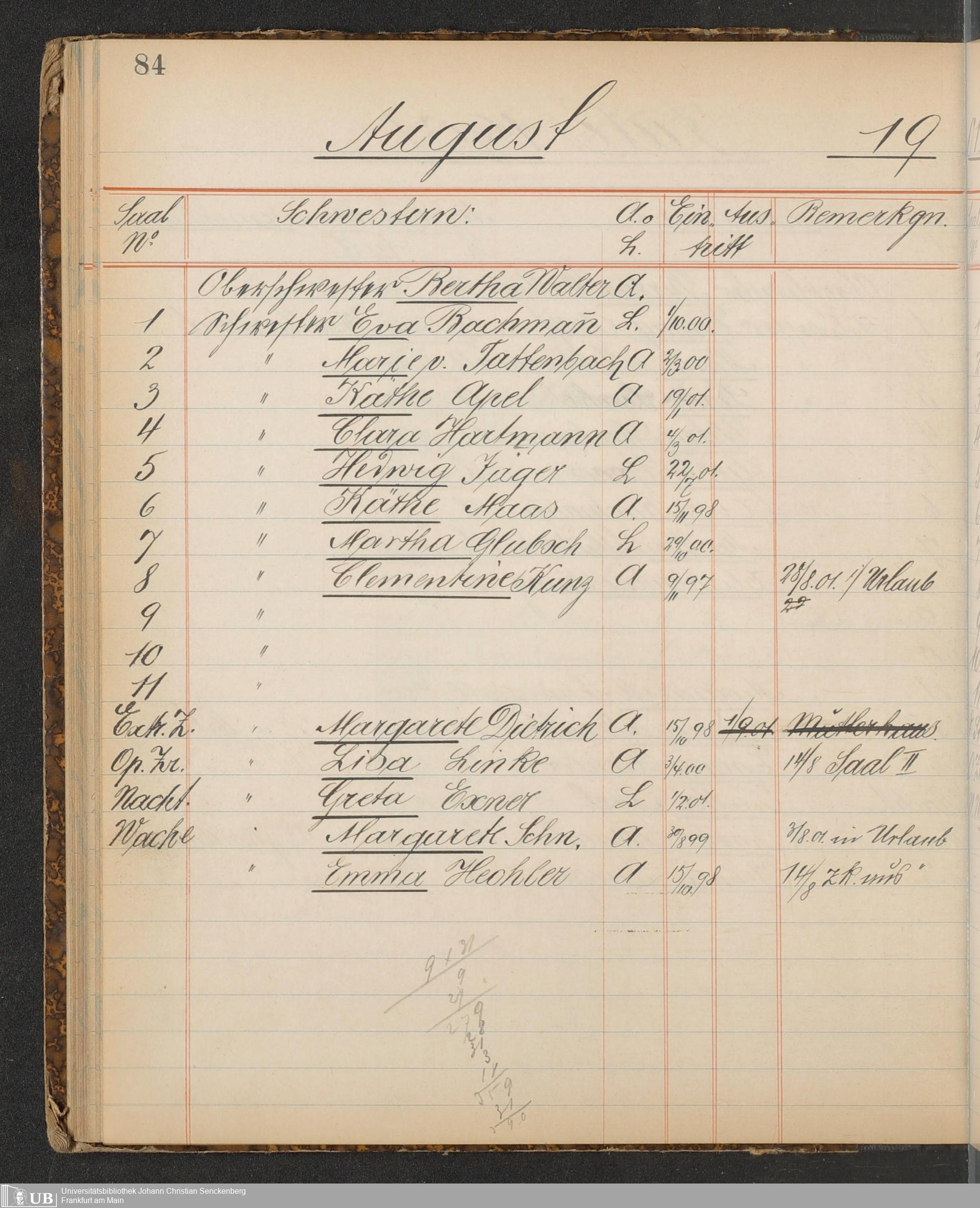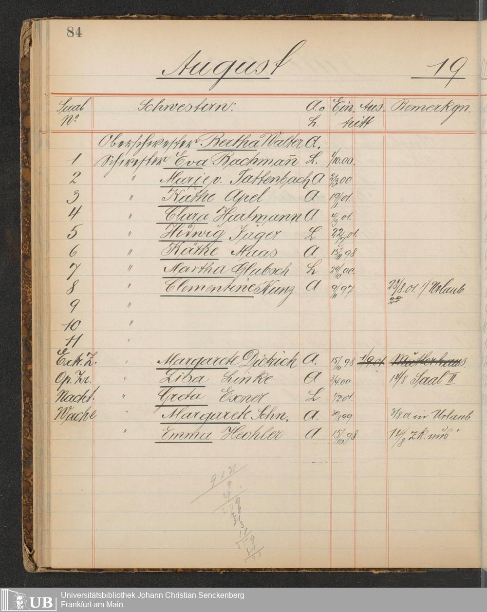 B 5 Dr. Senckenbergische Stiftung, 217 - Pflegepersonal des Bürgerhospitals