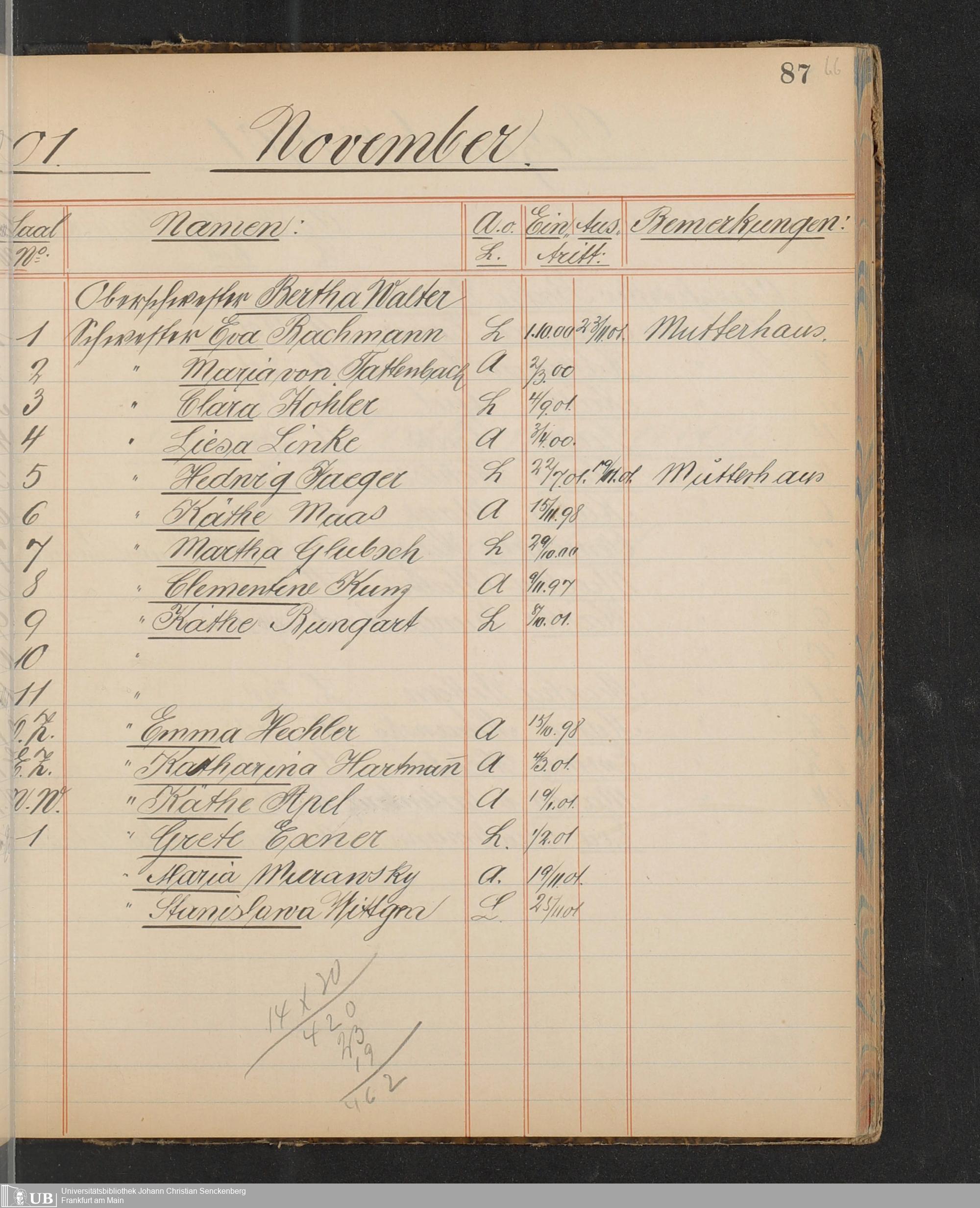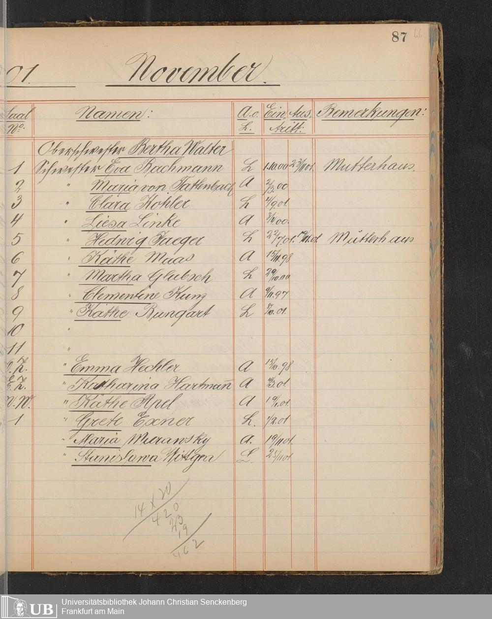 B 5 Dr. Senckenbergische Stiftung, 217 - Pflegepersonal des Bürgerhospitals