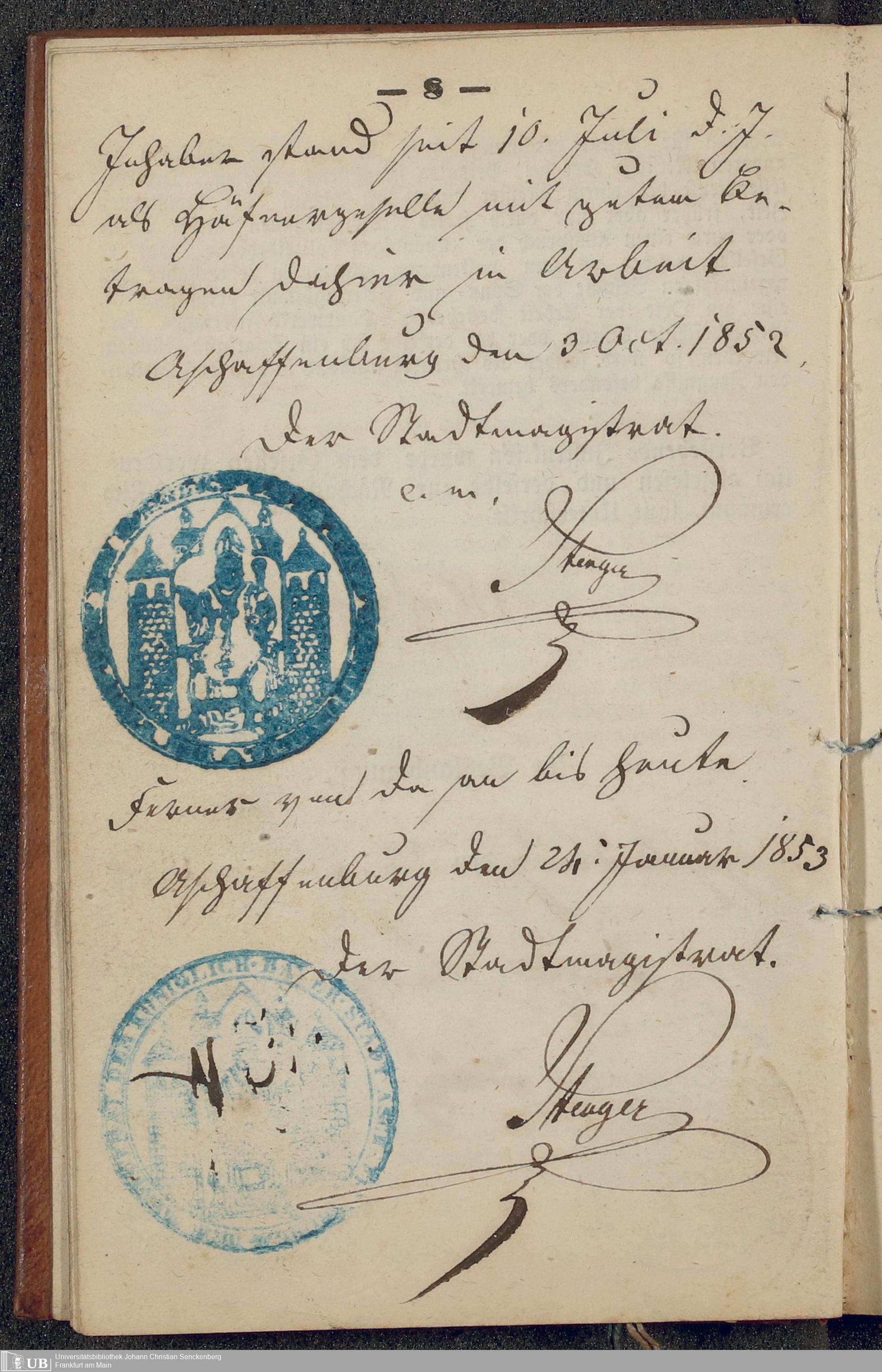 B 5 Dr. Senckenbergische Stiftung, 219 - Legitimationspapiere und Zeugnisse