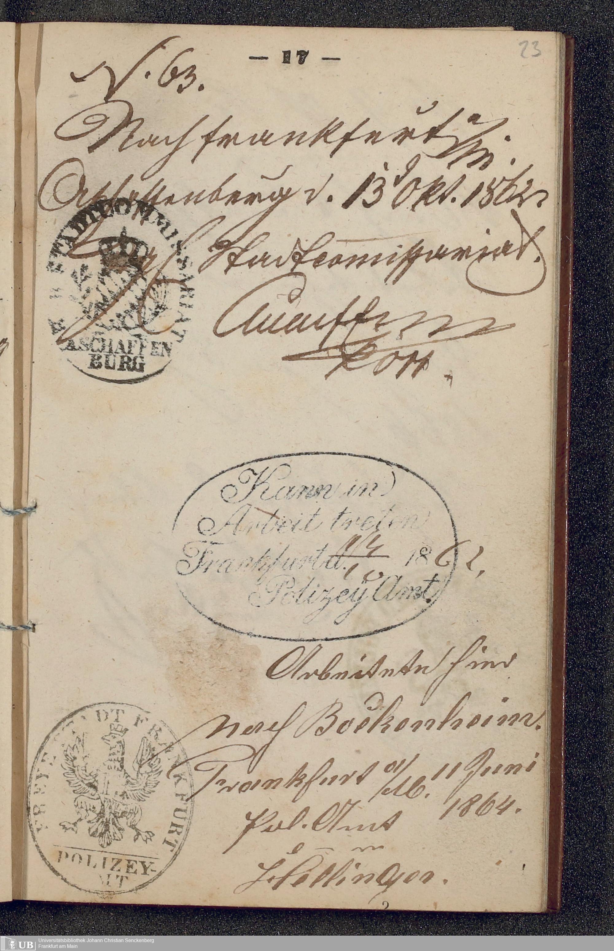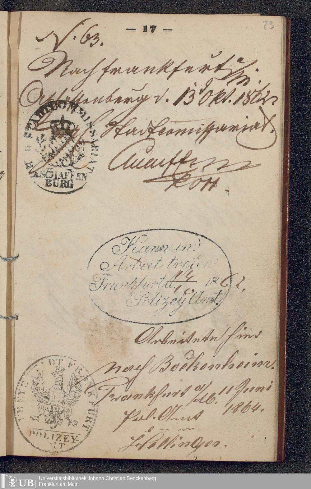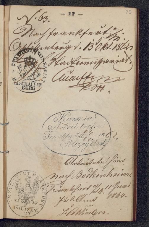 B 5 Dr. Senckenbergische Stiftung, 219 - Legitimationspapiere und Zeugnisse