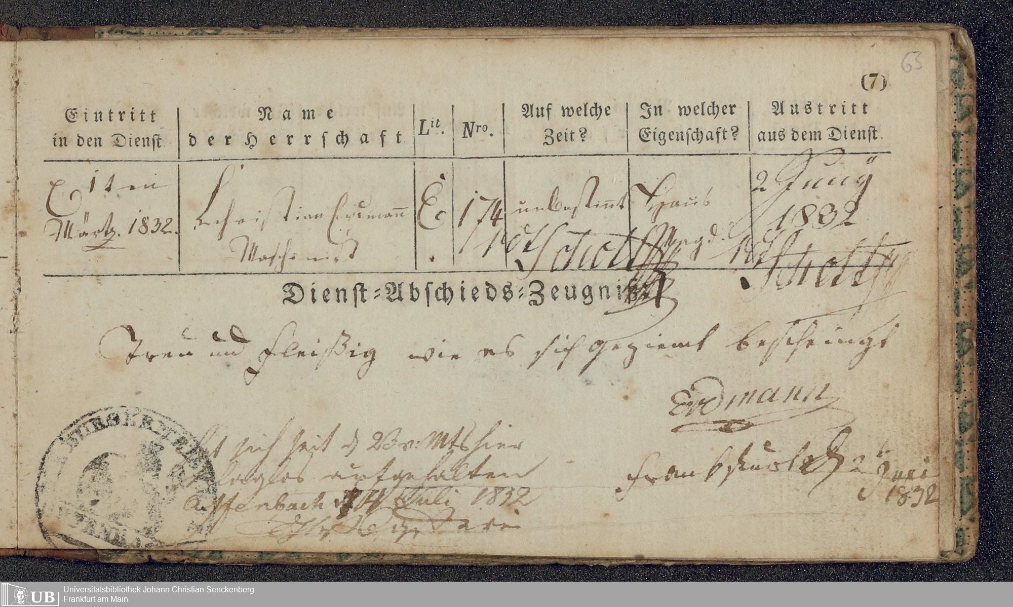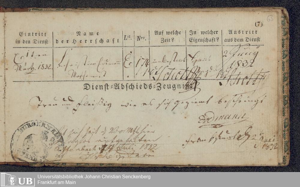 B 5 Dr. Senckenbergische Stiftung, 219 - Legitimationspapiere und Zeugnisse