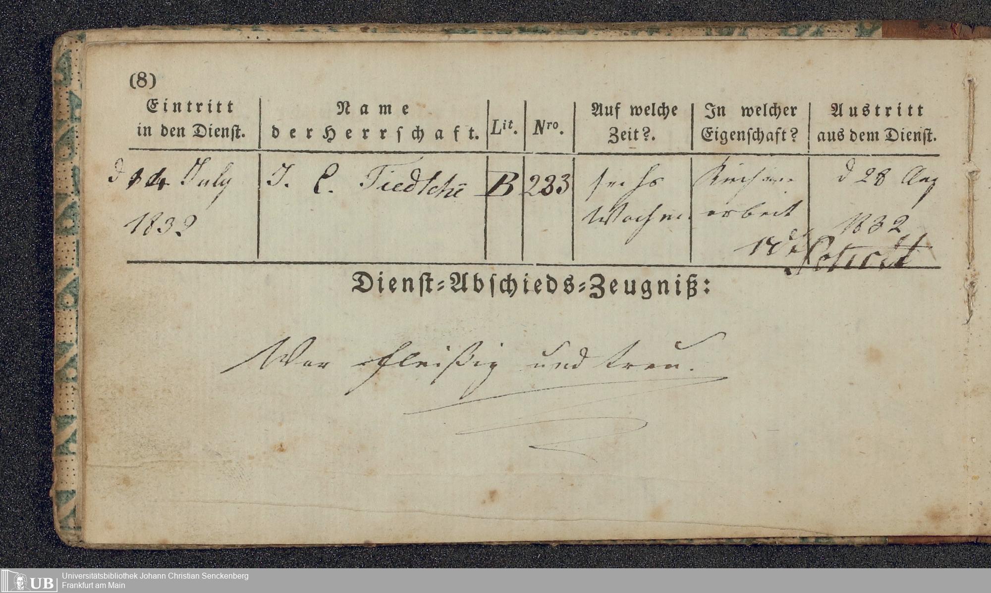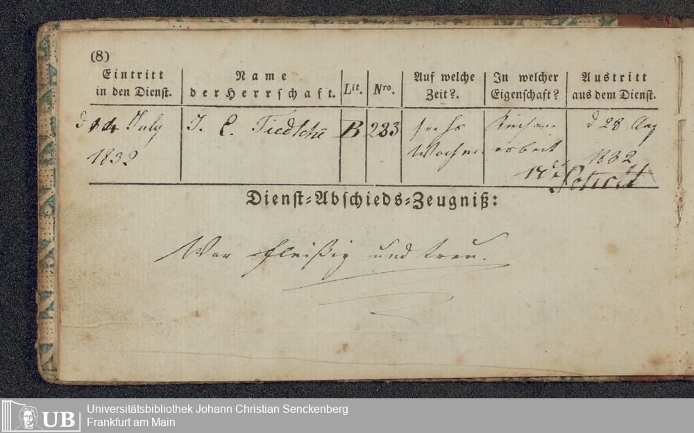 B 5 Dr. Senckenbergische Stiftung, 219 - Legitimationspapiere und Zeugnisse