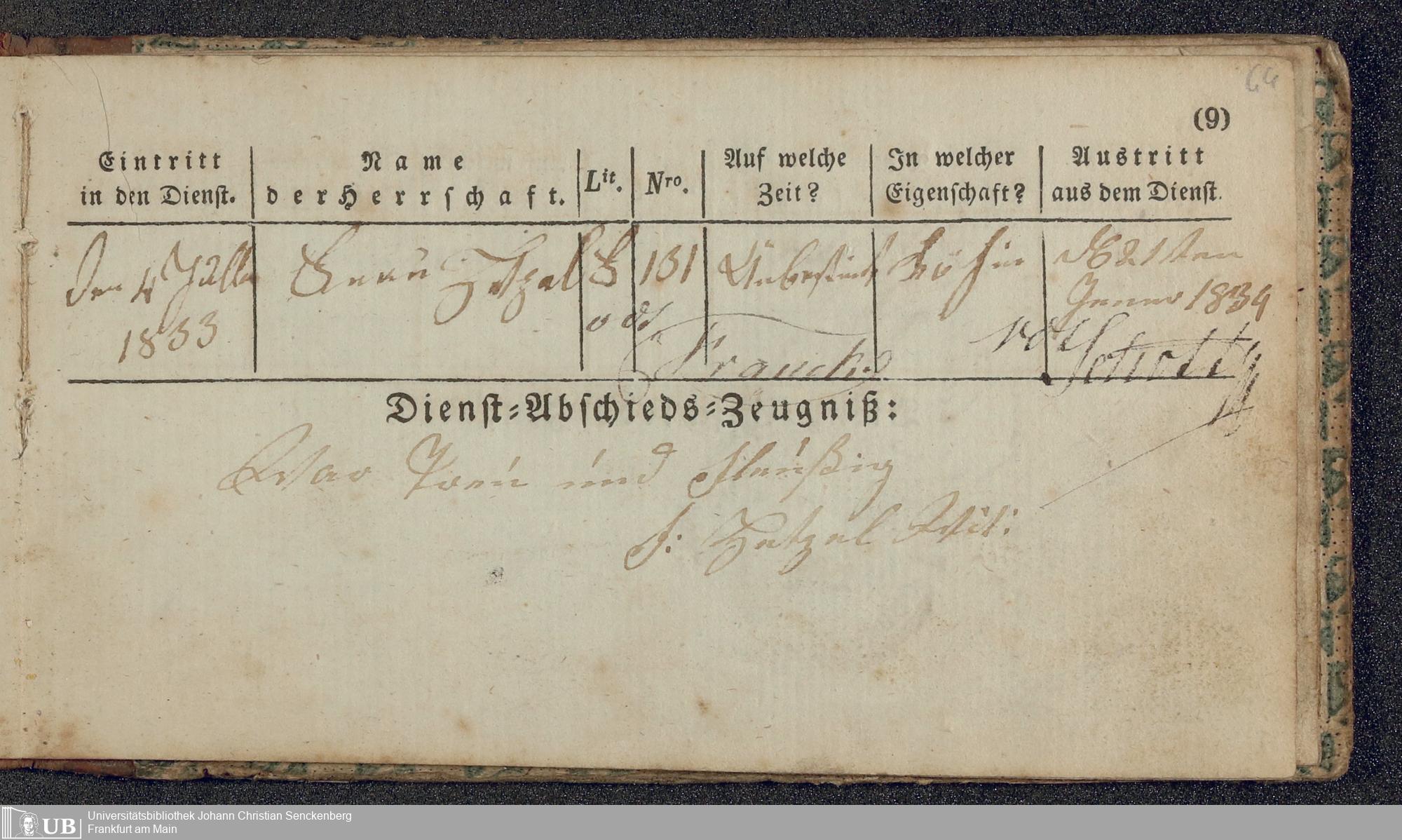 B 5 Dr. Senckenbergische Stiftung, 219 - Legitimationspapiere und Zeugnisse