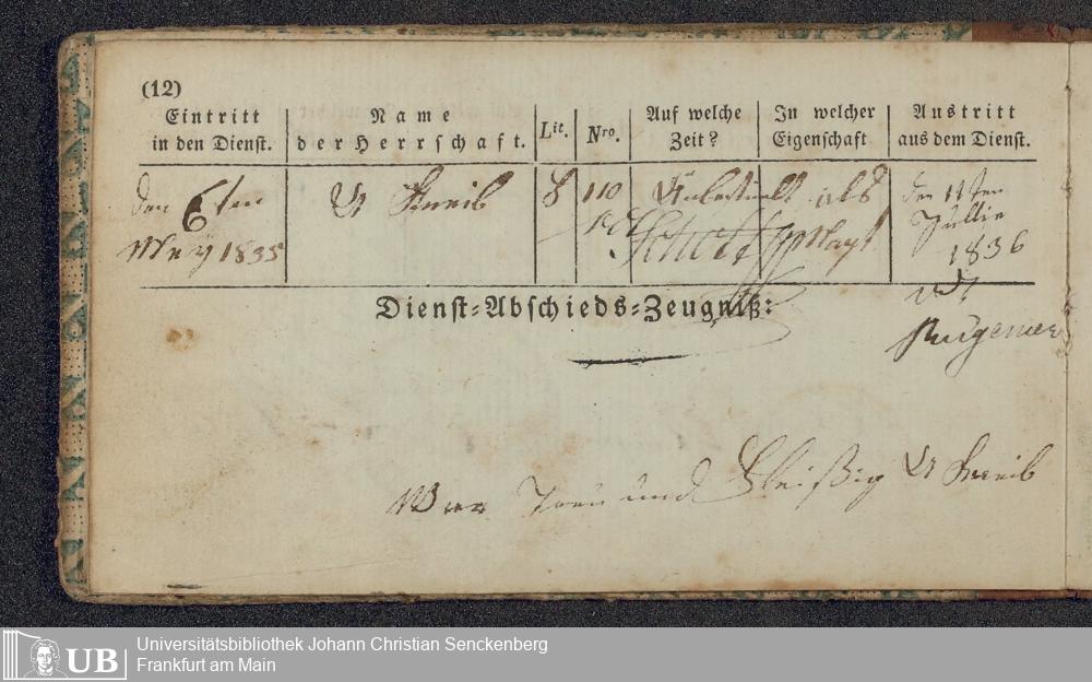 B 5 Dr. Senckenbergische Stiftung, 219 - Legitimationspapiere und Zeugnisse