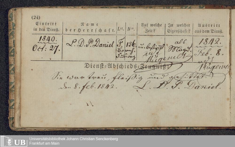 B 5 Dr. Senckenbergische Stiftung, 219 - Legitimationspapiere und Zeugnisse