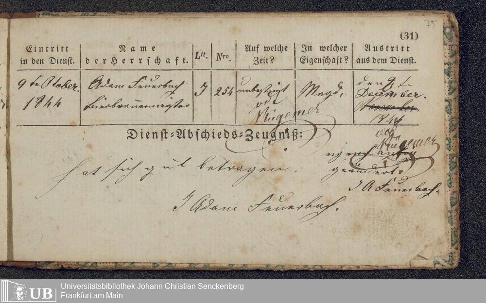 B 5 Dr. Senckenbergische Stiftung, 219 - Legitimationspapiere und Zeugnisse