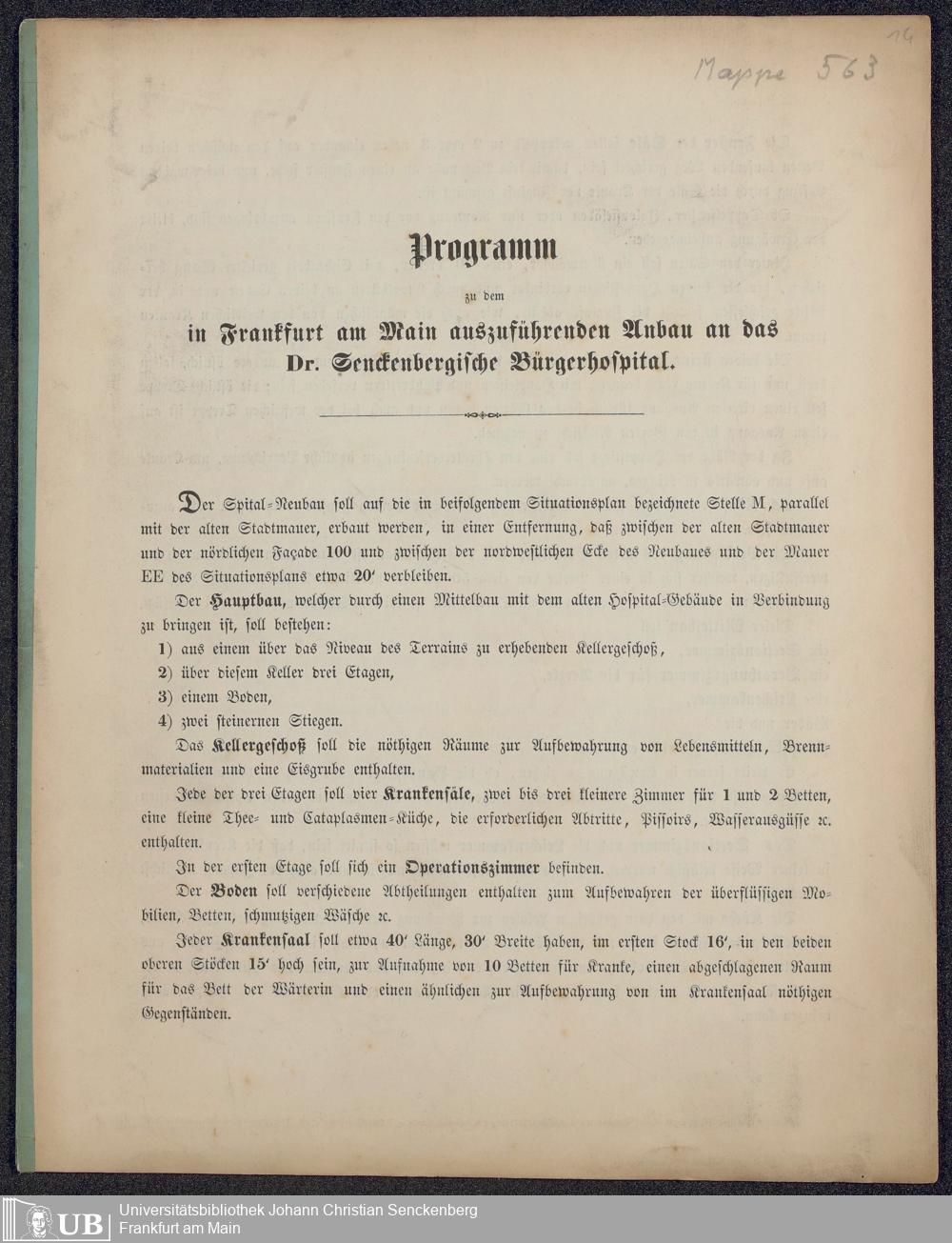 B 5 Dr. Senckenbergische Stiftung, 195 - Neubau des Bürgerhospitals in der Stiftsstraße