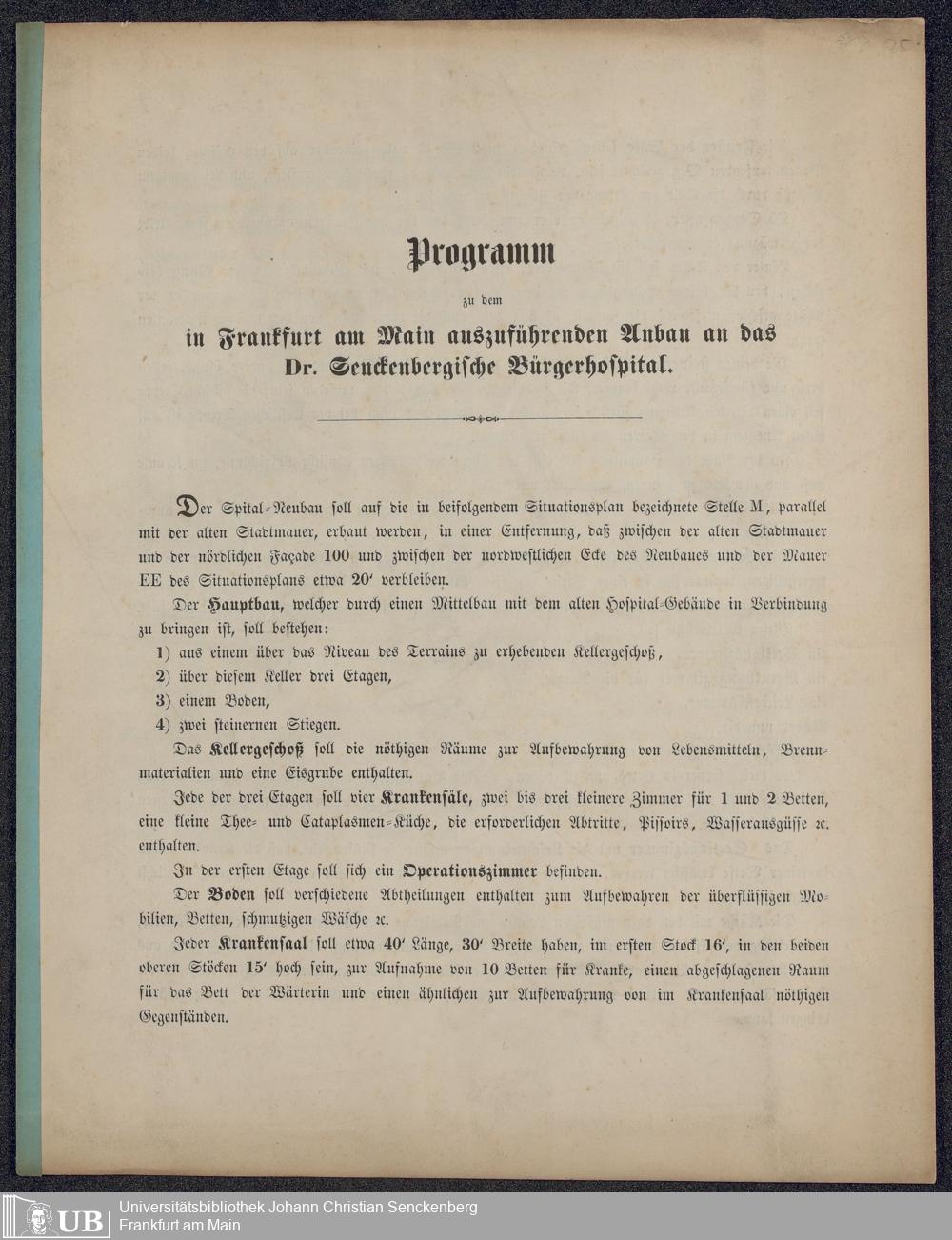 B 5 Dr. Senckenbergische Stiftung, 195 - Neubau des Bürgerhospitals in der Stiftsstraße