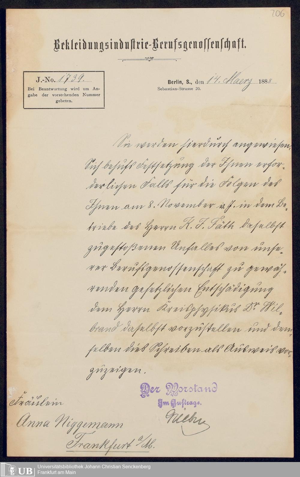 B 5 Dr. Senckenbergische Stiftung, 249 - Verhandlungen der Administration mit der Ortskrankenkasse