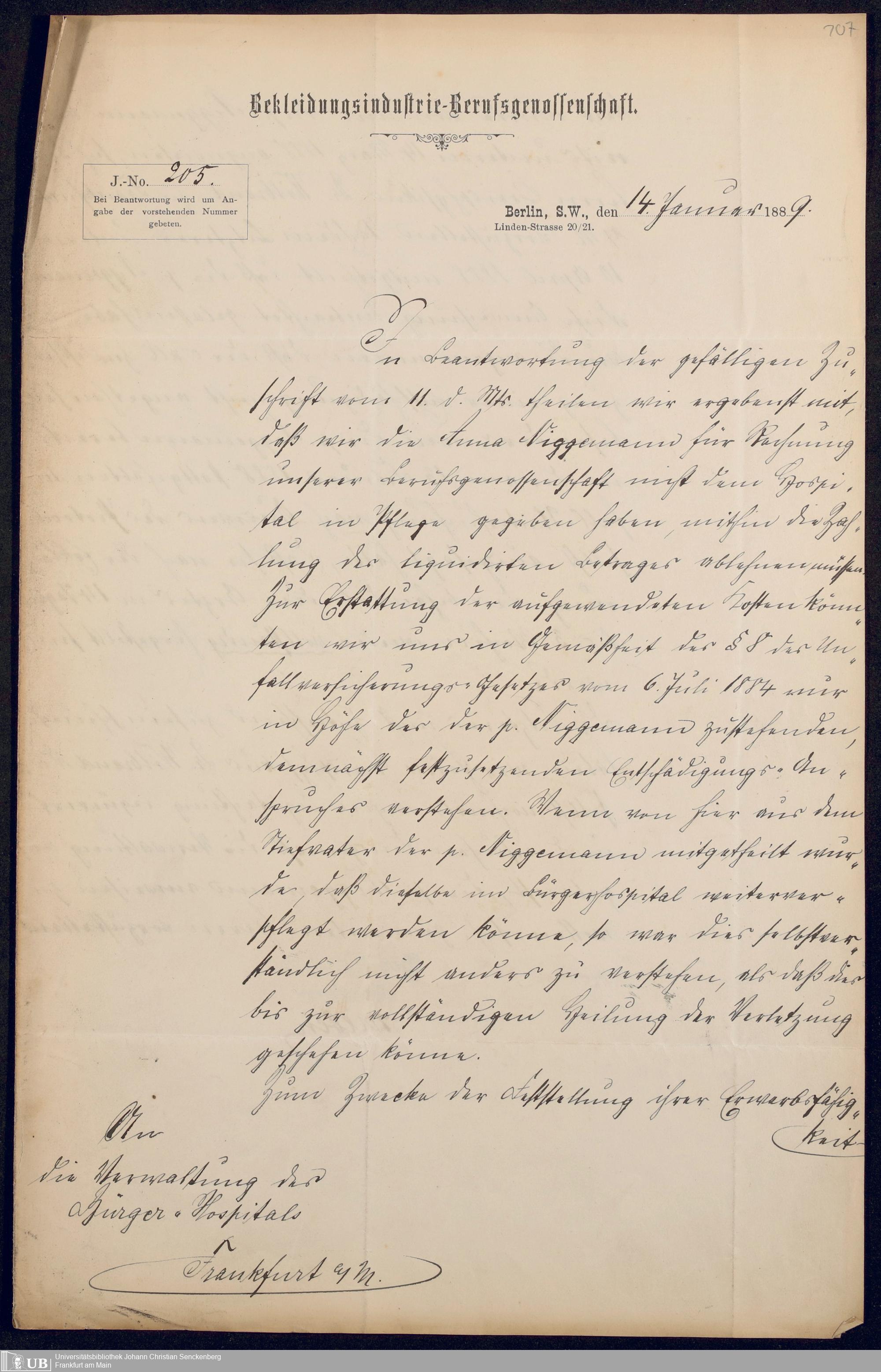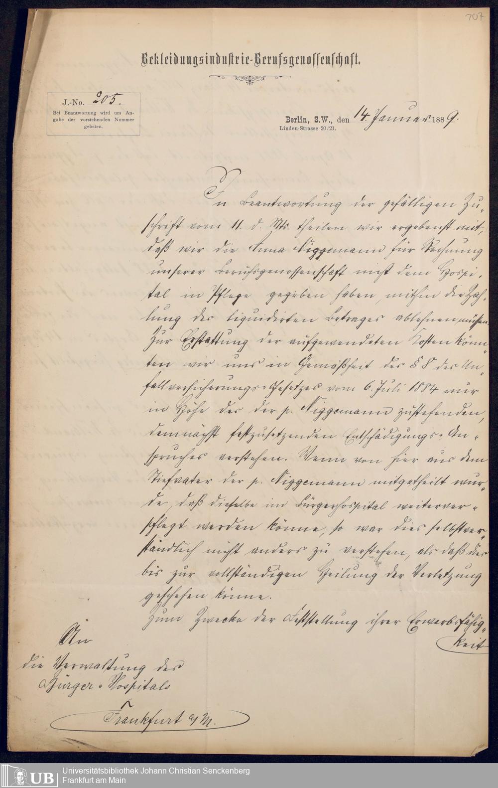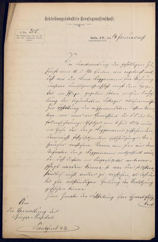 B 5 Dr. Senckenbergische Stiftung, 249 - Verhandlungen der Administration mit der Ortskrankenkasse