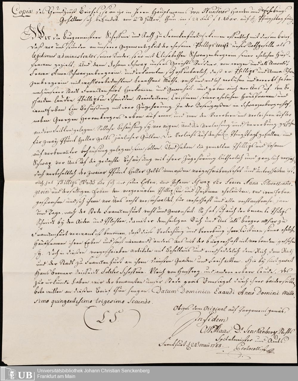 B 5 Dr. Senckenbergische Stiftung, 51 - Haus F 56 Großer Hirschgraben "Zum Schwarzenburghof"