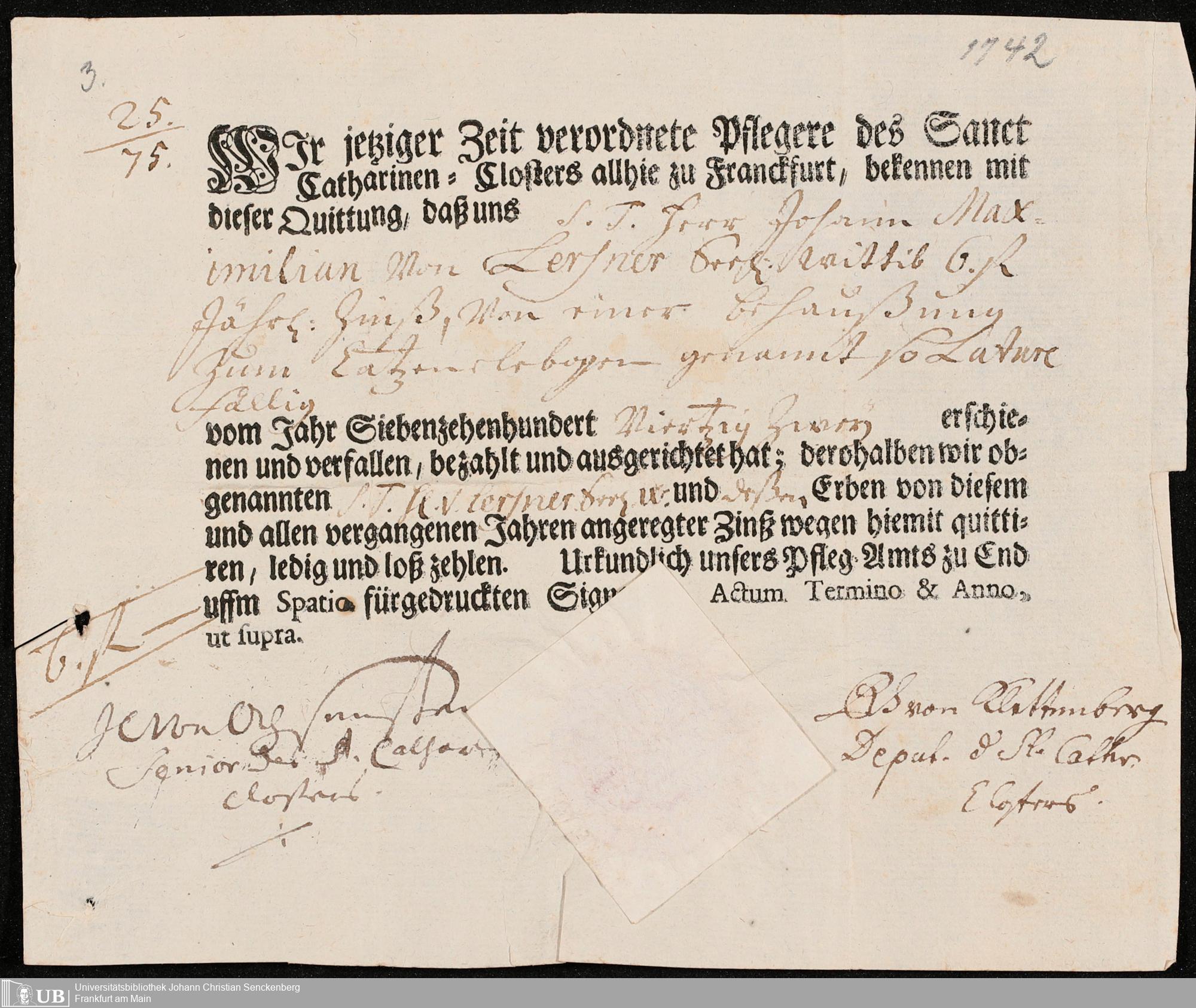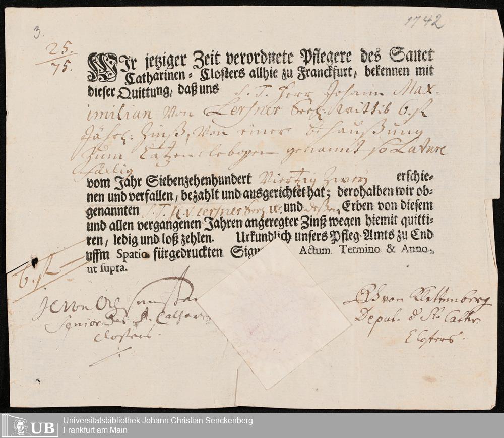 Nachlass Johann Christian Senckenberg