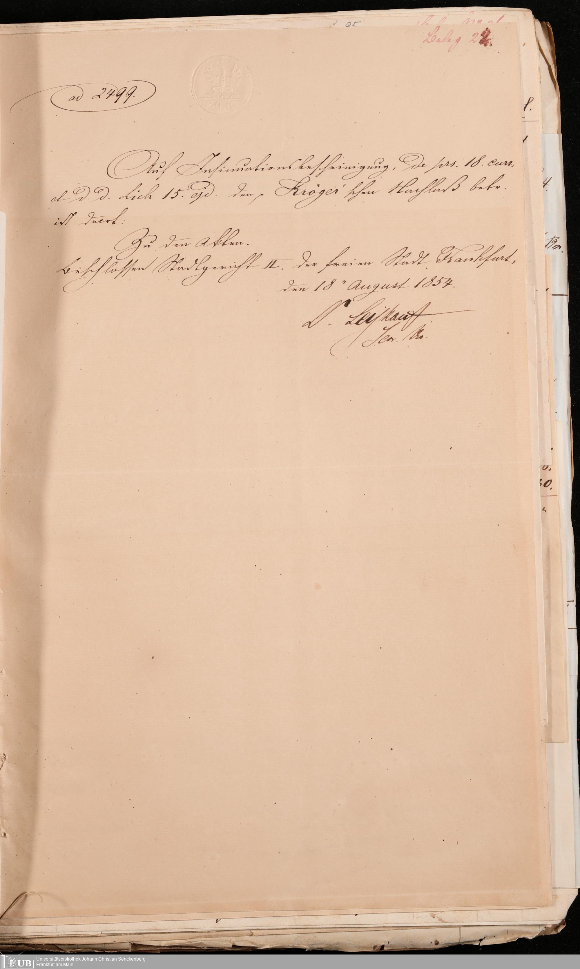 B 5 Dr. Senckenbergische Stiftung, 102 - zum Testament Kröger II
